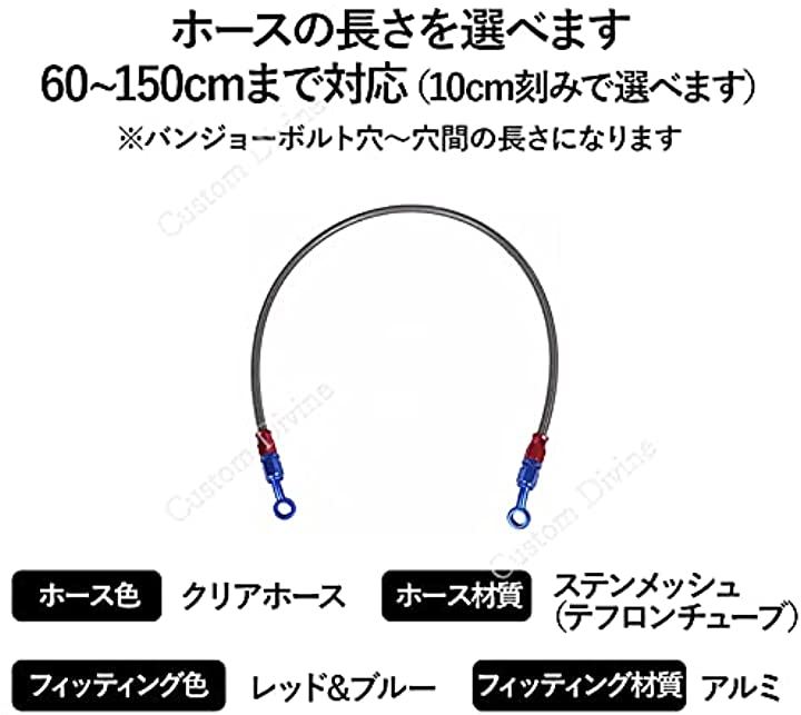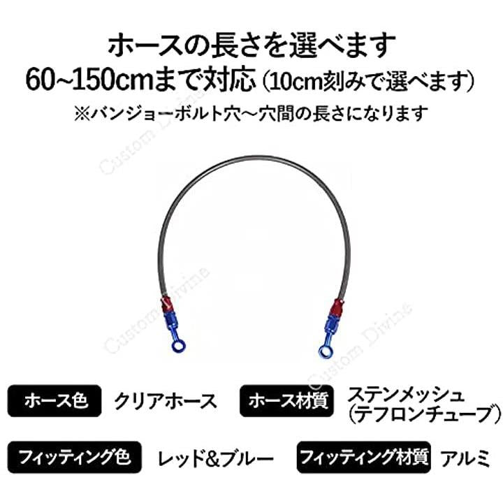 ホース色:クリアホース ホース材質:ステンメッシュ(テフロンチューブ) フィッティング色:レッド&ブルー フィッティング材質:アルミ タイプ:汎用ホース