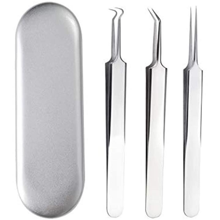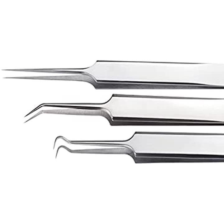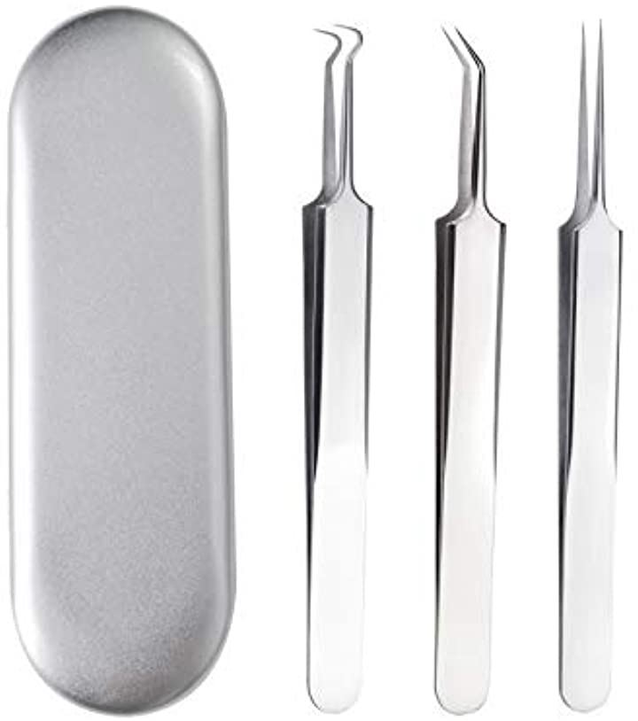 ピンセット 精密ピンセット マイクロピンセット 3種セット ケース付き シルバー