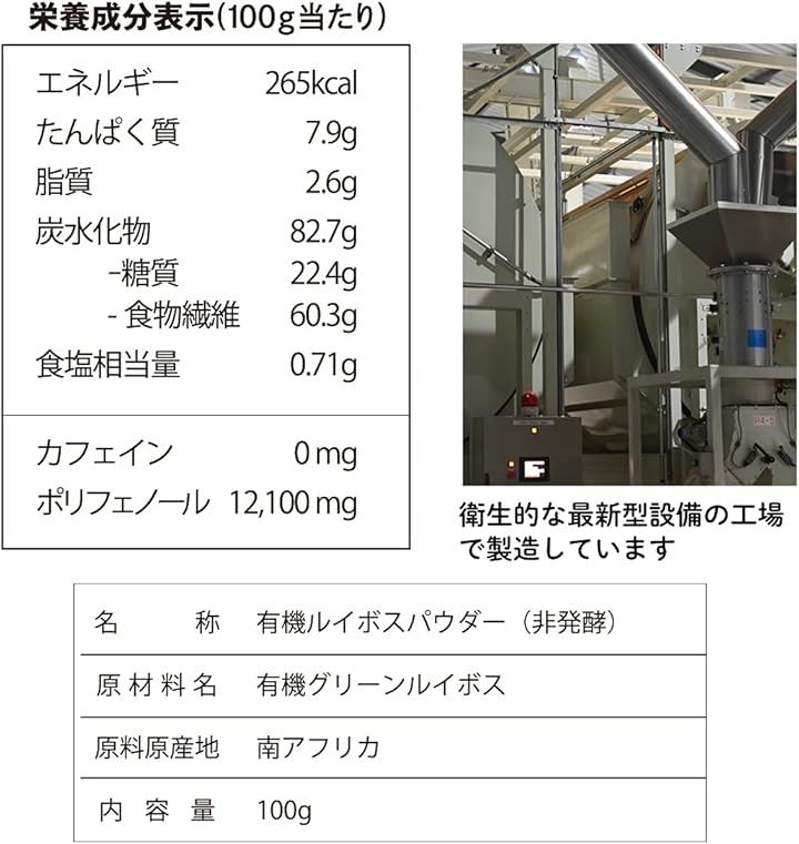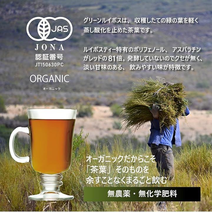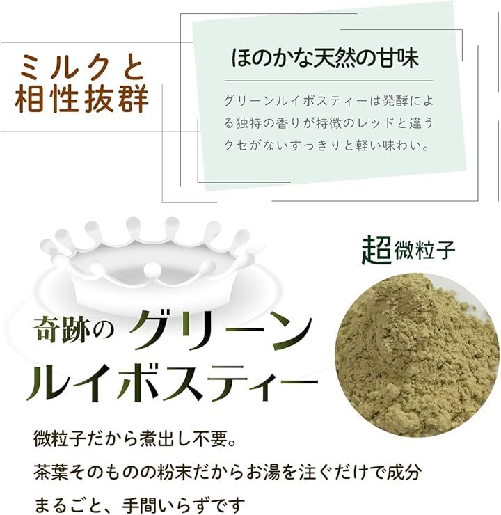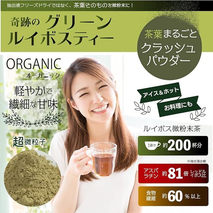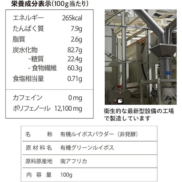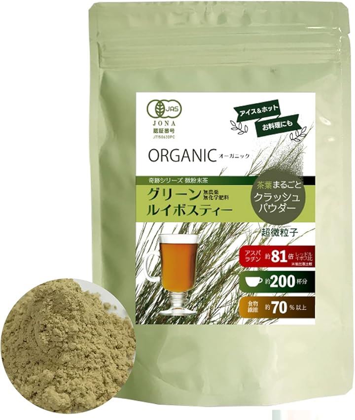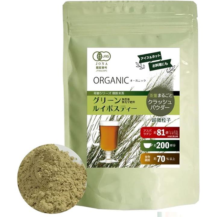 オーガニック グリーンルイボスティー 100g 約200杯分 有機JAS 認証 抹茶みたいな 微粉末 茶葉まるごとクラッシュパウダー ノンカフェイン