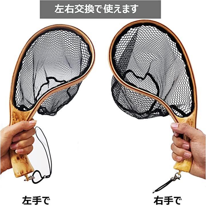 ラバーコーティングネット 渓流 タモ網 木製 玉網 ランディングネット 曲柄 小型 コンパクトで軽量 渓流釣り フライ