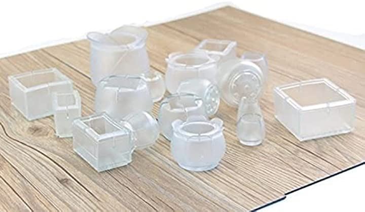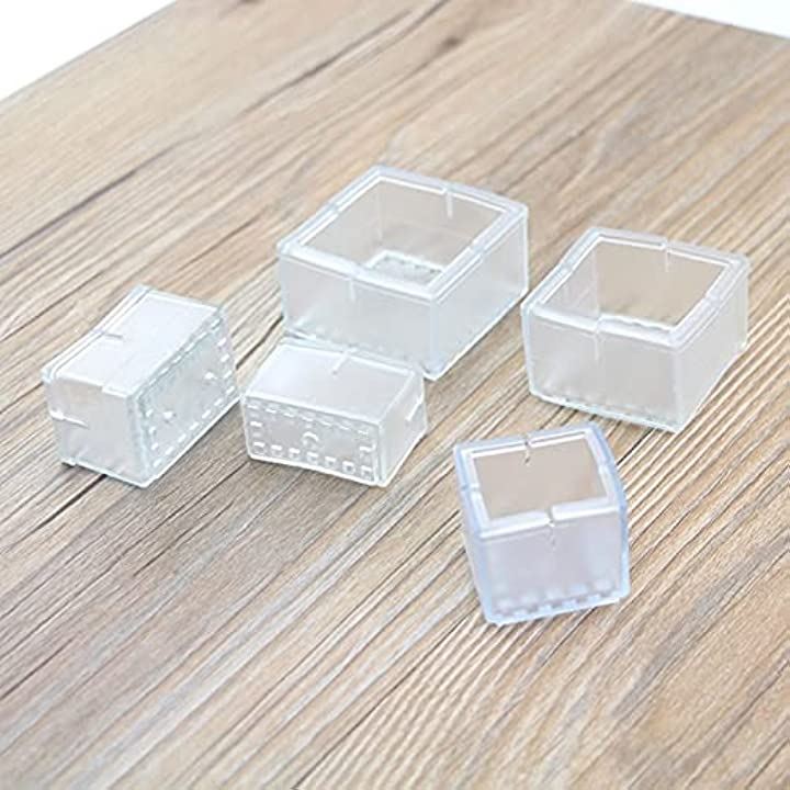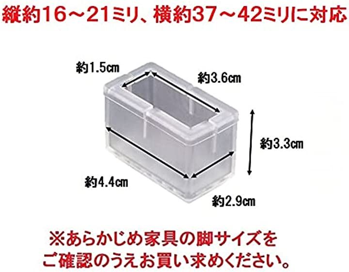椅子脚カバー 8個セット 角型16-21mmx37-42mm 透明 フェルトなし 滑り止め クリアカラー 椅子脚キャップ ガード 騒音 トラブル 防止 床傷防止