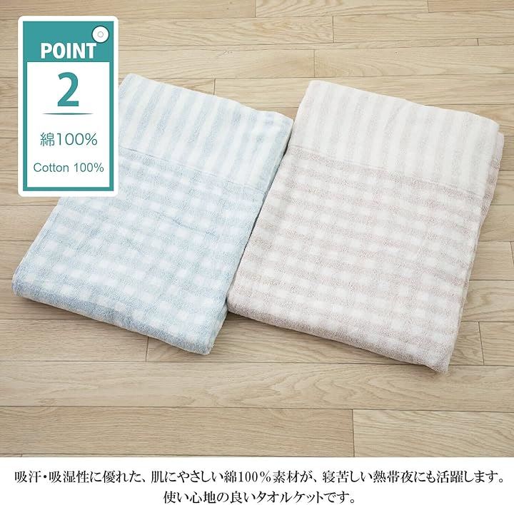 タオルケット シングル 厚手 夏用 綿100% おしゃれ 軽い オールシーズン 保育園 140 x 190 cm チェック