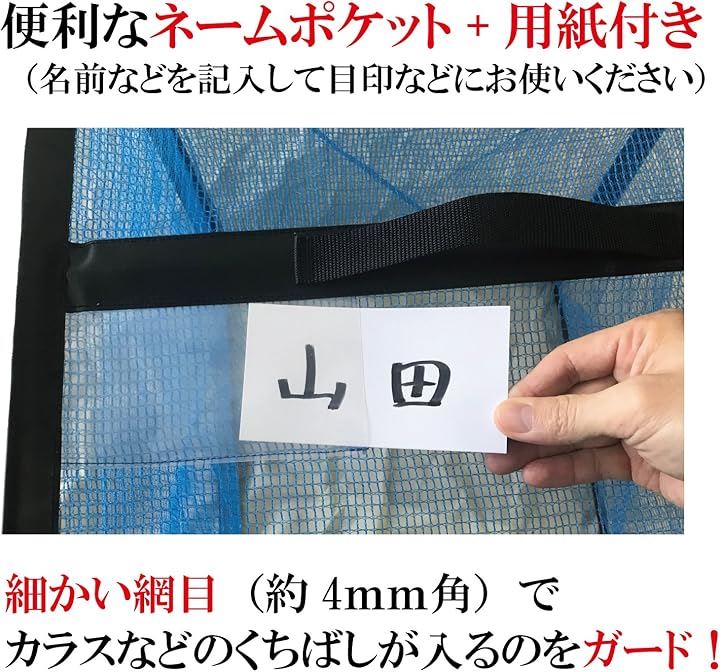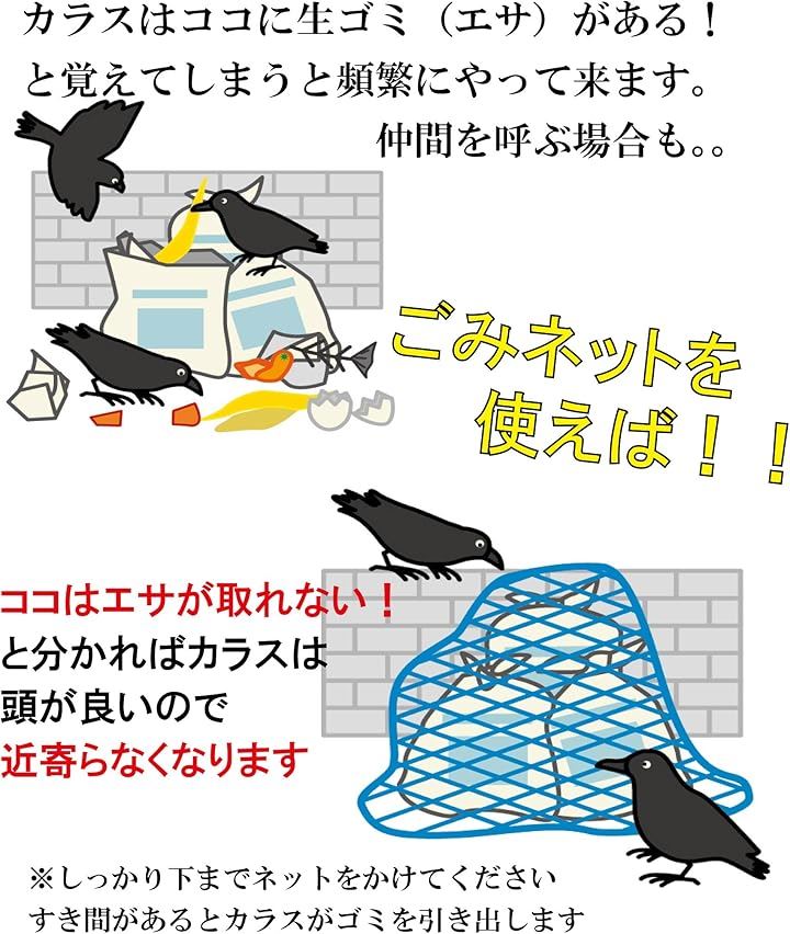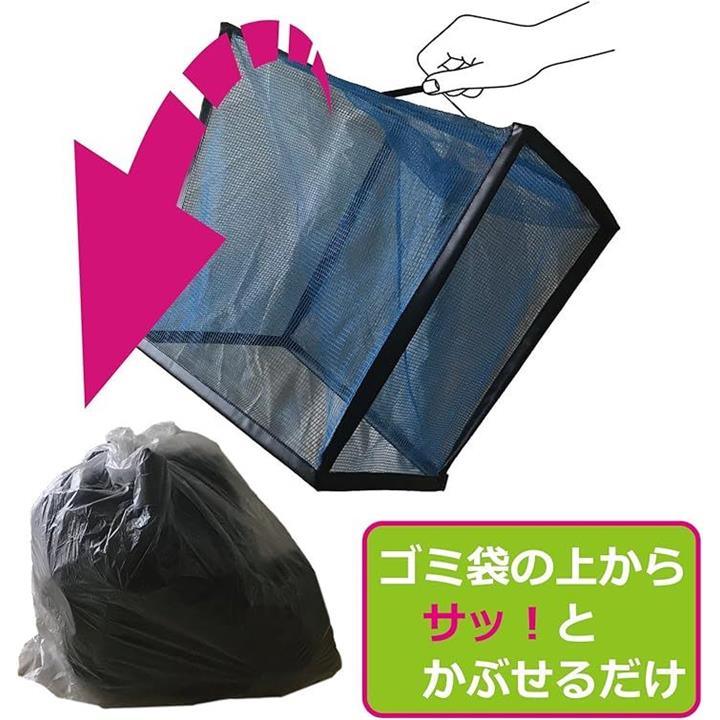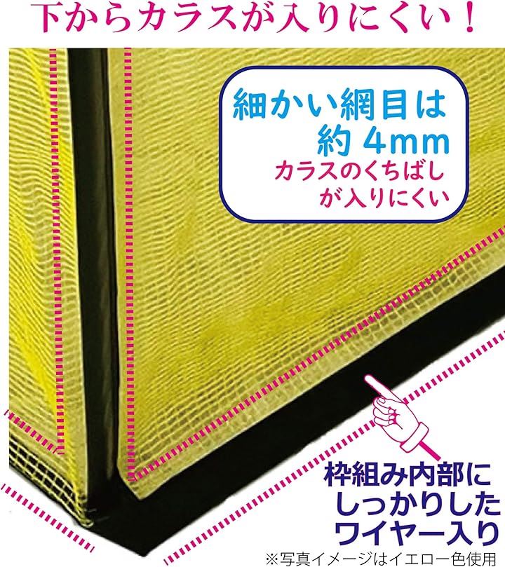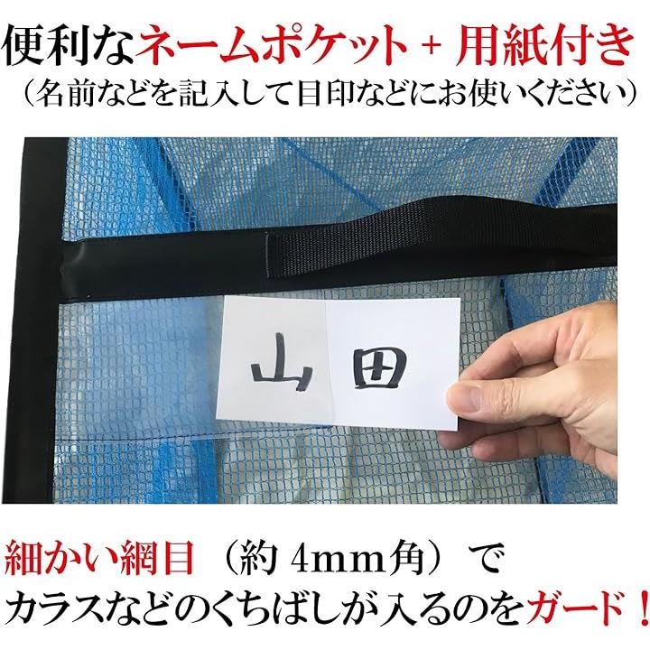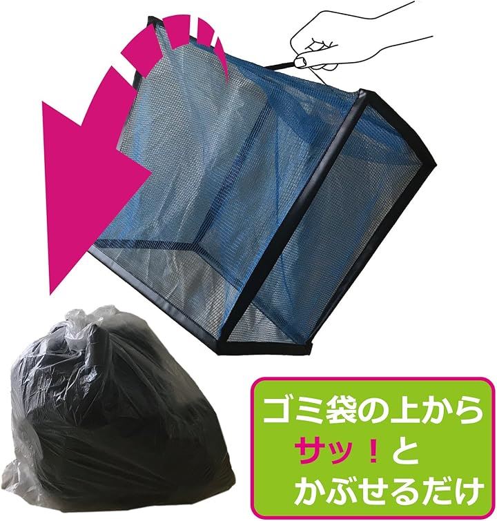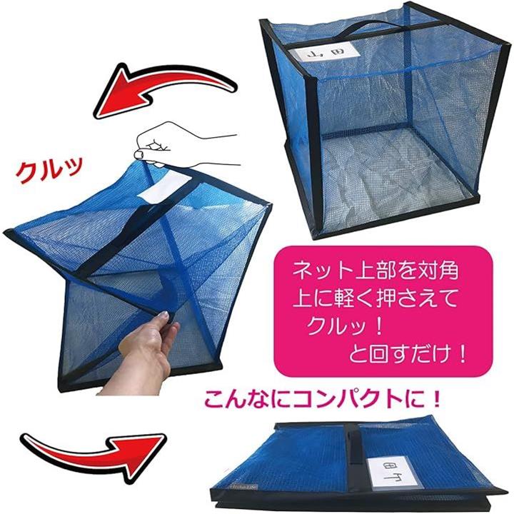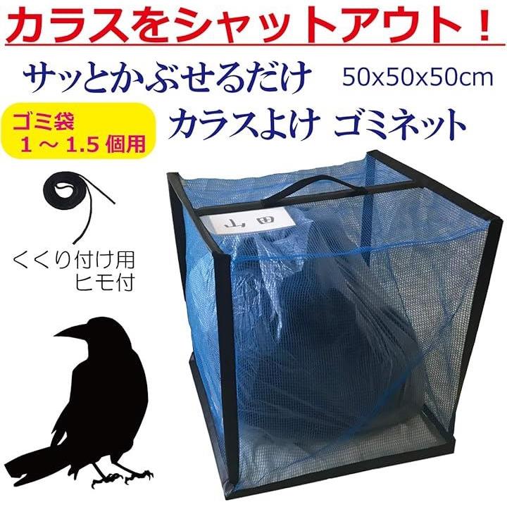 カラス よけ ごみ ネット ボックス 使い終わったらクルっと薄く折りたたみできる 底面無し 約50x50x50cm ゴミ袋 約1-2雇用 ゴミの上からサッとかぶせるだけ 細かい網目 くくり付けヒモ・持ち手 ネームポケット付
