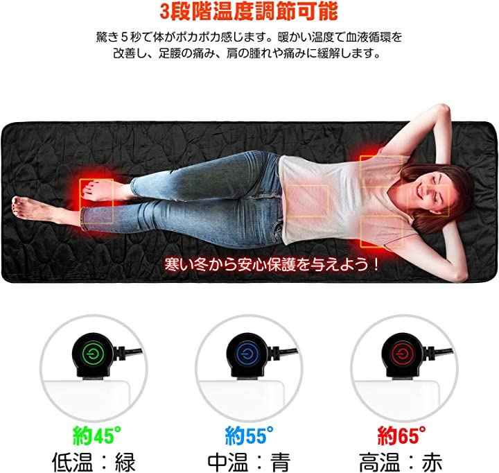 ・「3段階温度調節&最大68度発熱可能」この加熱マットは操作簡単で、初心者でもOKです。ヒートケーブルと満充電モバイルバッテリーを接続するとスイッチONで電気マットレスは驚き5秒で暖かくなります。