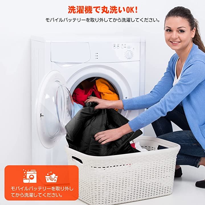 ・「丸洗いOK」最新版防水・絶縁充電ケーブルを搭載、洗濯機で丸洗い可能になります。