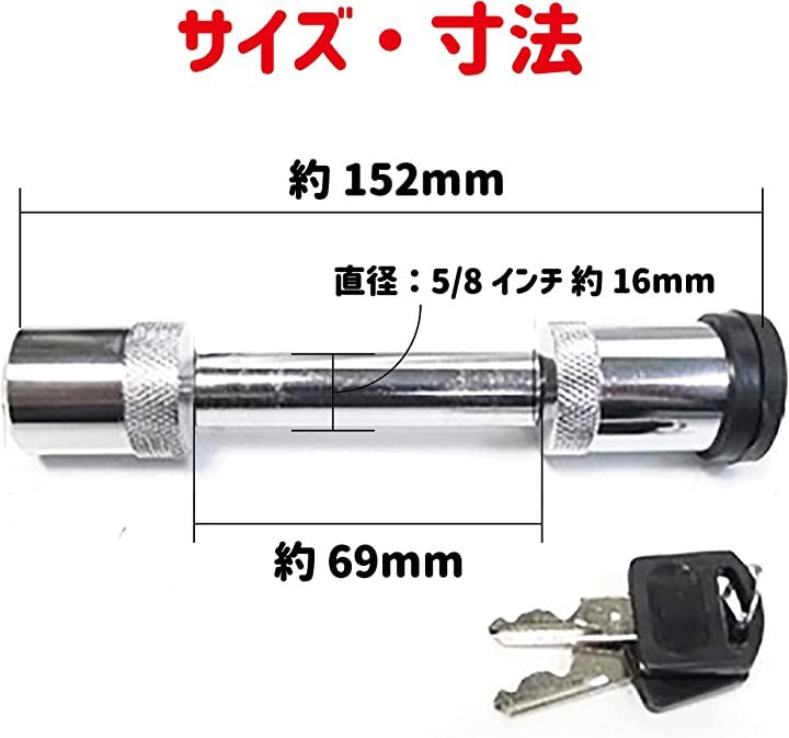 ヒッチメンバー ロックピン ヒッチロック 5/8インチ 16mm 50mm角 ストレートキー トレーラー ジェットスキー ボート運搬 バスボート 予備鍵付き