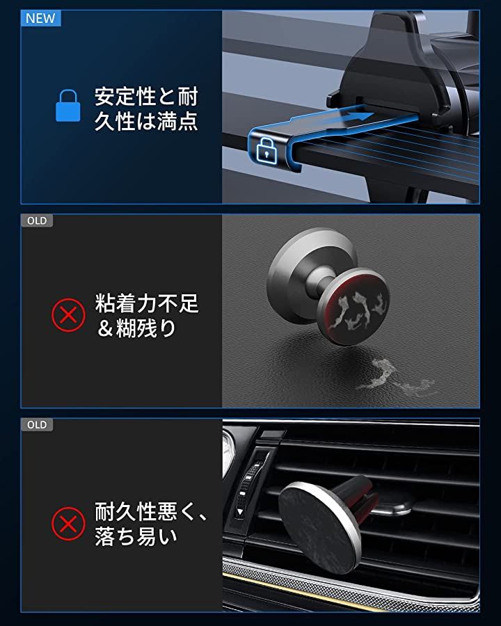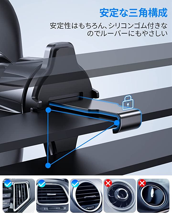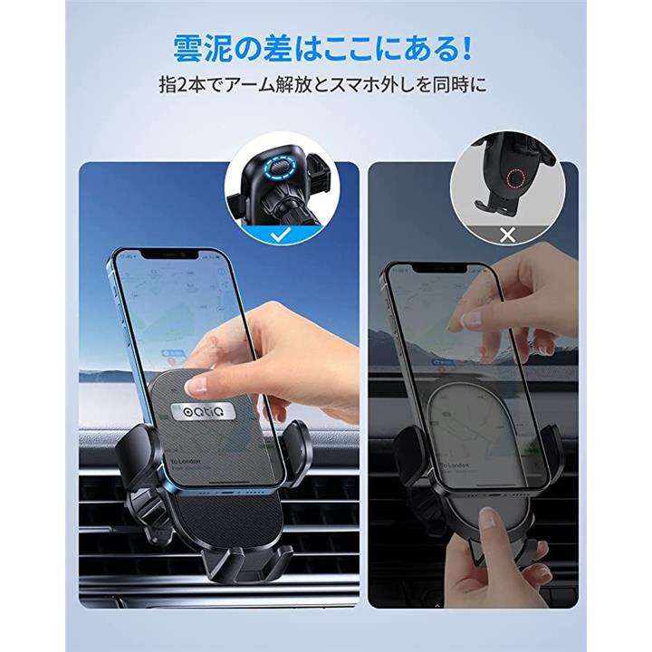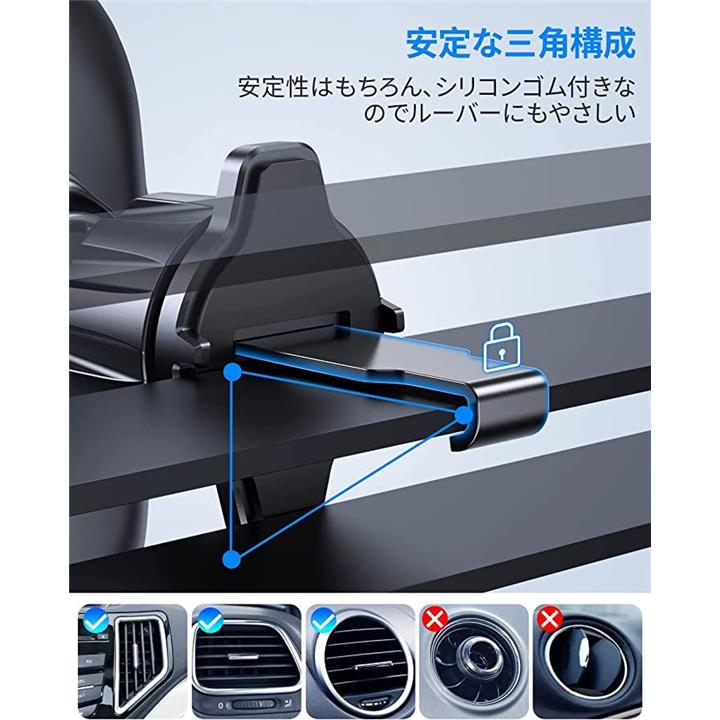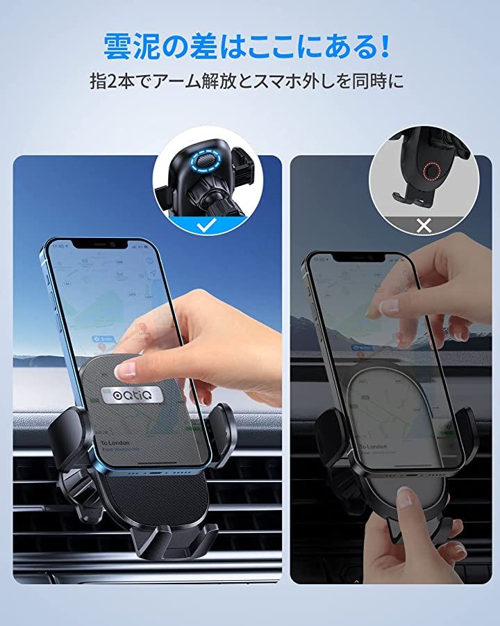 スマホホルダー 日本語説明書付車エアコン吹き出し口 車載ホルダー スマホスタンド 片手脱着 ワンタッチ 360度回転 安定 振動に強い ケース対応 取り付け簡単 4-7インチ全機種対応右ハンドル向け