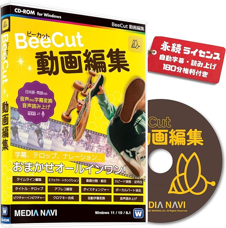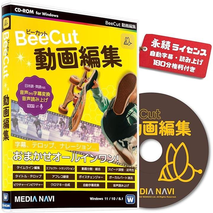 BeeCut 動画編集 永続ライセンス 自動字幕起こし テロップ アフレコ テキスト読み上げ対応のオールインワン動画編集ソフト |