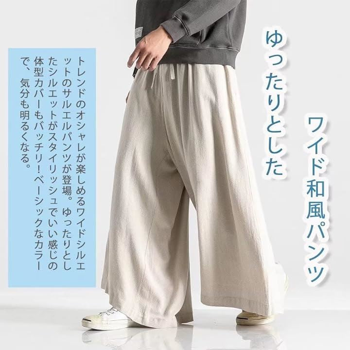 ワイドパンツ ガウチョパンツ 袴パンツ ゆったり 和式ズボン ロング 大きいサイズ サルエルパンツ 麻 リネン ビッグシルエット ルームウェア 無地 オーバーサイズ 男女兼用 |
