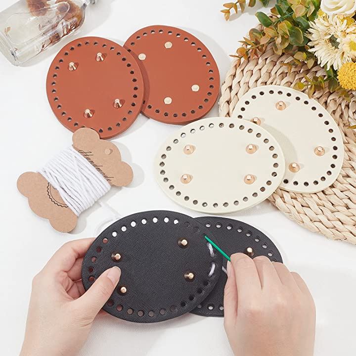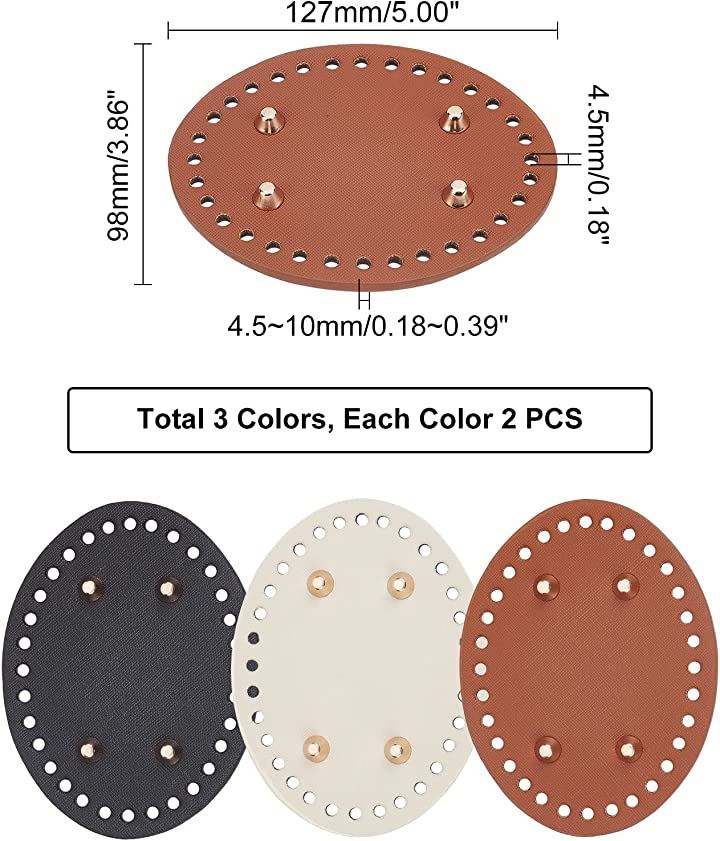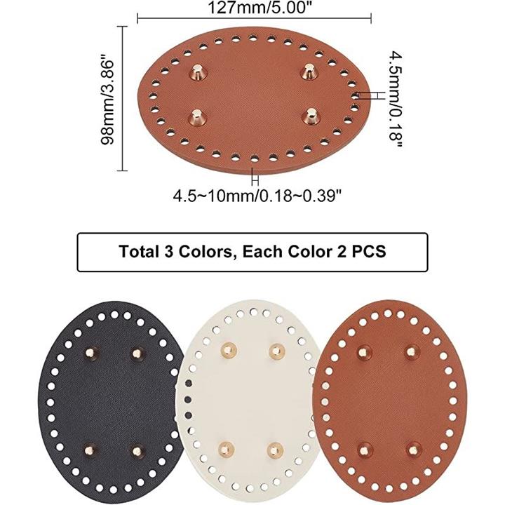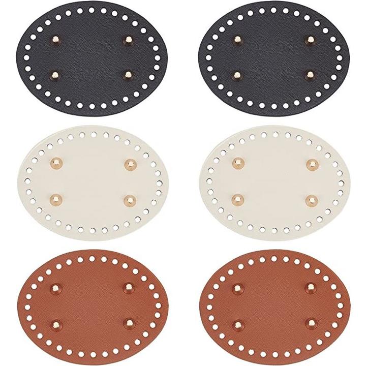 6枚セット バッグボトム 楕円底 3色 手芸 レザークラフト 底釘付 12.7 x9.8cm