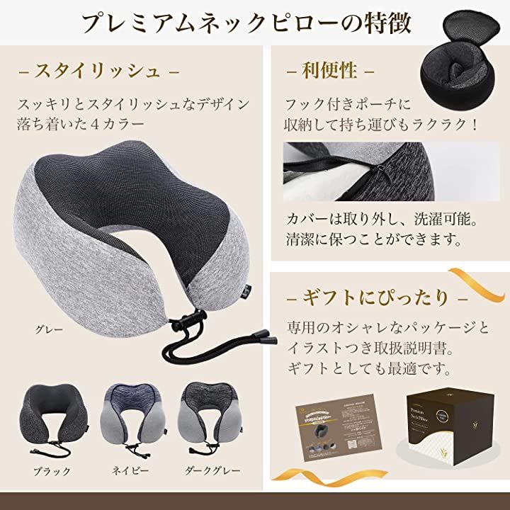 プレミアムネックピロー 携帯枕 トラベルピロー 首枕 低反発 旅行枕 お昼寝 飛行機 新幹線