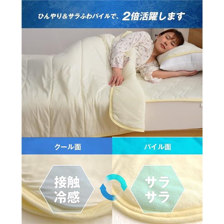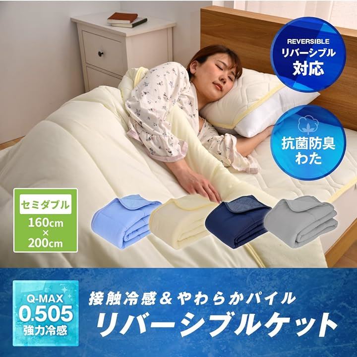 Q-MAX 0.505 接触冷感&やわらかパイル リバーシブルケット セミダブルサイズ 160x200cm アイボリー Q-max値0.5以上 ひんやり 洗える抗菌防臭わた使用 熱帯夜対策 |