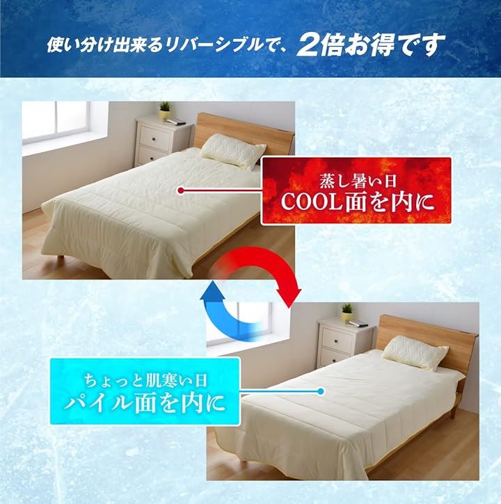 Q-MAX 0.505 接触冷感&やわらかパイル リバーシブルケット シングルサイズ 140x200cm アイボリー Q-max値0.5以上 ひんやり 洗える抗菌防臭わた使用 熱帯夜対策 |
