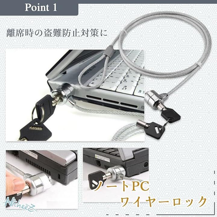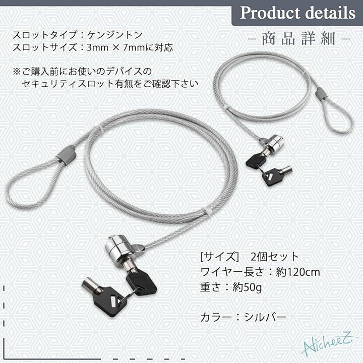 ノートパソコン用 セキュリティ ワイヤー ロック チェーン 盗難 防止 対策 2個セット