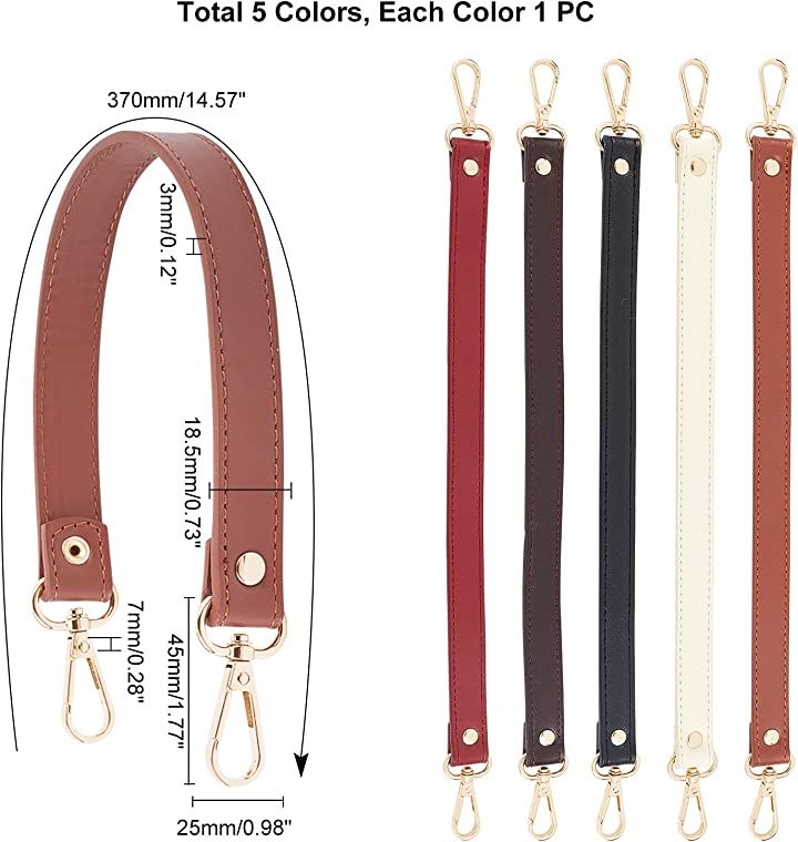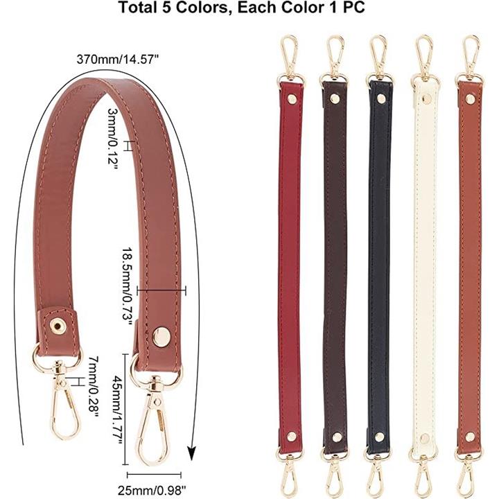 5色 5本 レザーバッグ持ち手 レザーバッグストラップ ショート交換レザーバッグハンドル 長さ37cm ハンドバッグストラップ アクセサリー