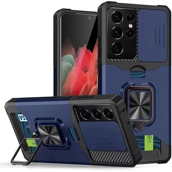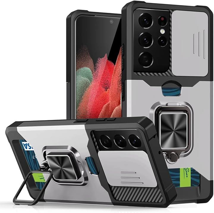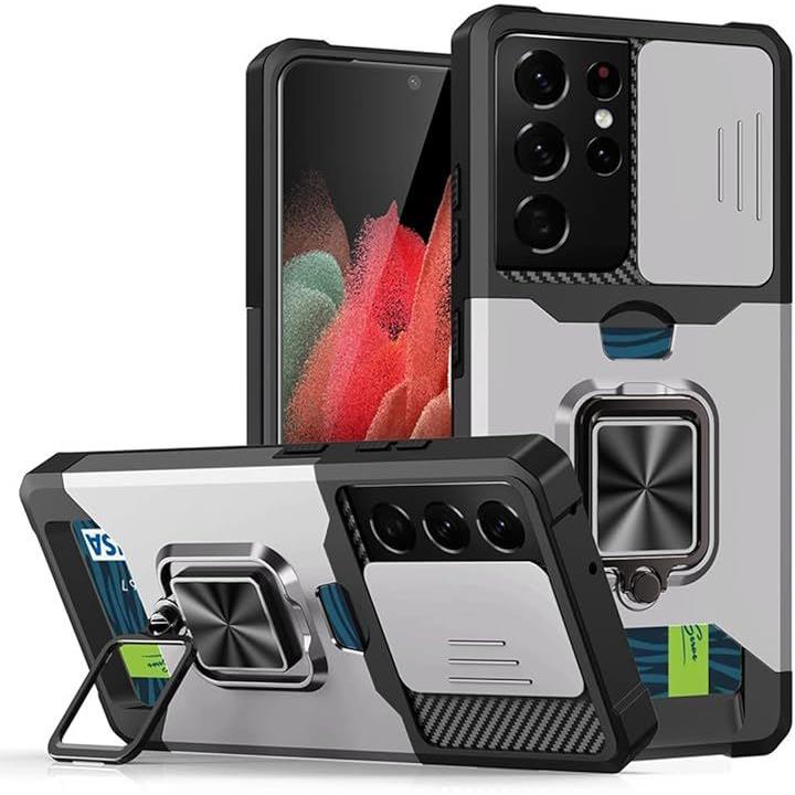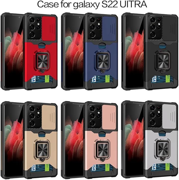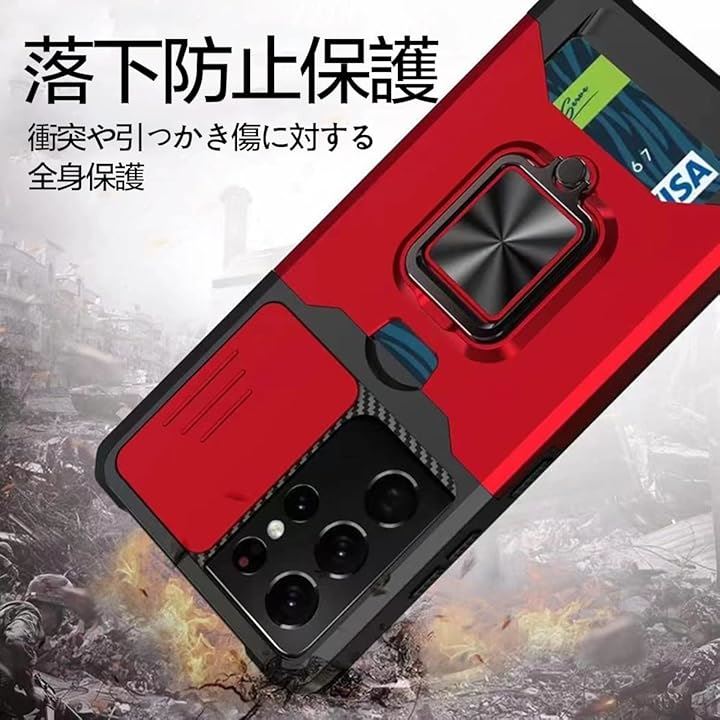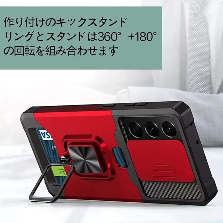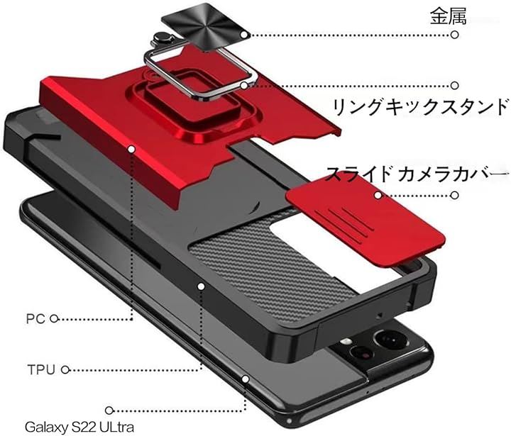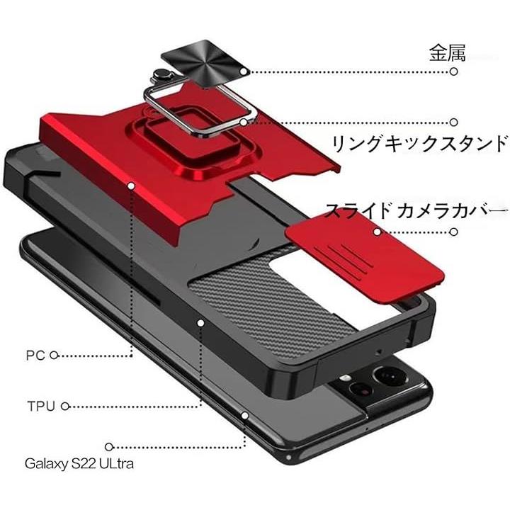 For Galaxy S22 Ultra ケース レンズ保護 リングキックスタンドケース 超薄型 指紋防止 擦り傷防止 耐衝撃ケースPC & TPU case 專用スマホケース