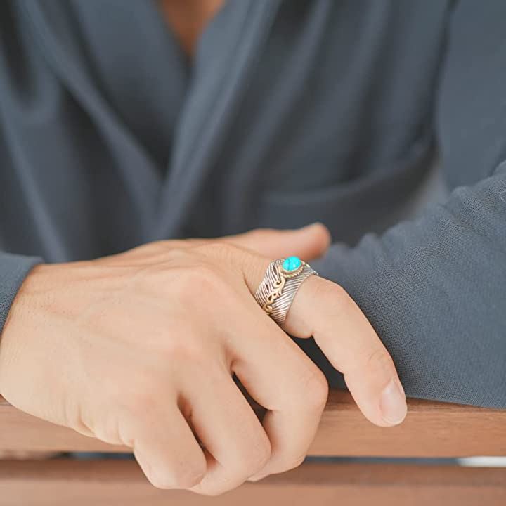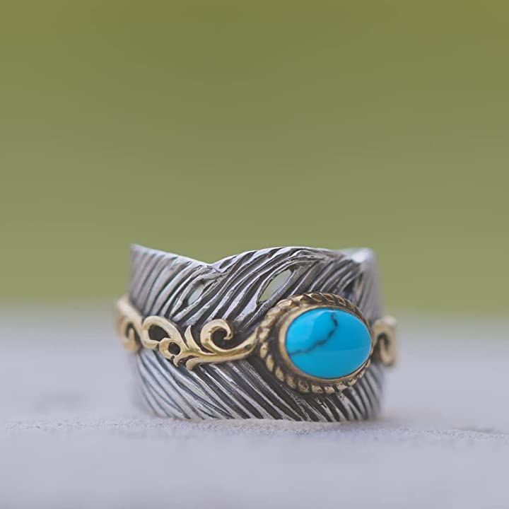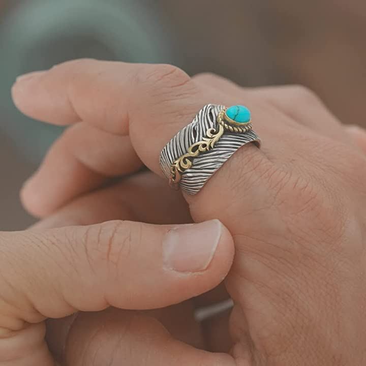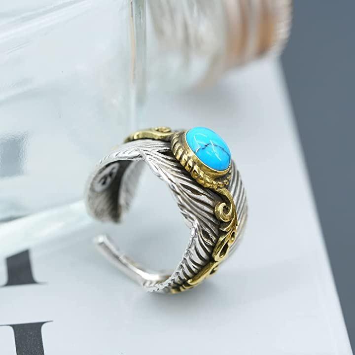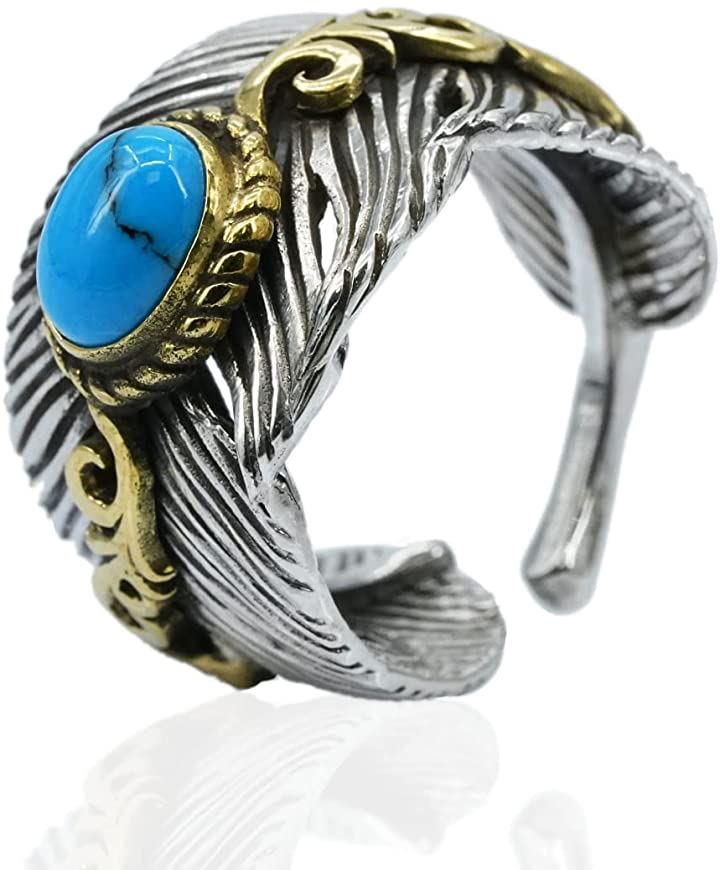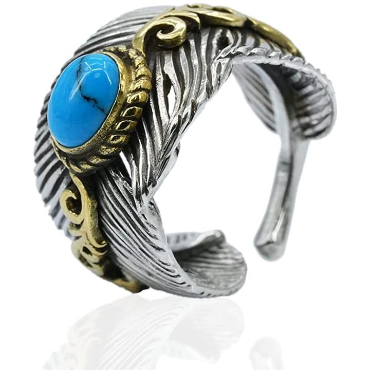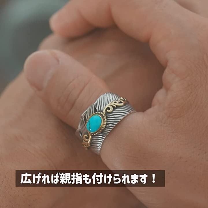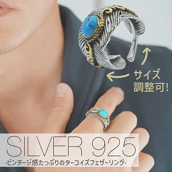 ターコイズ リング シルバー 925 フェザー 指輪 トルコ石 羽根 メンズ レディース