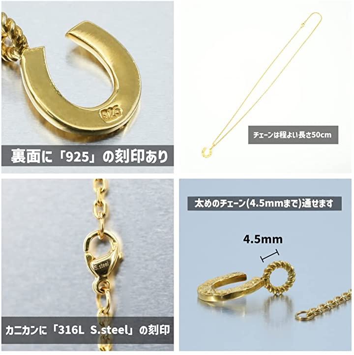 ホースシュー ハワイアンジュエリー ネックレス シルバー925 24K ゴールド 馬蹄 メンズ レディース