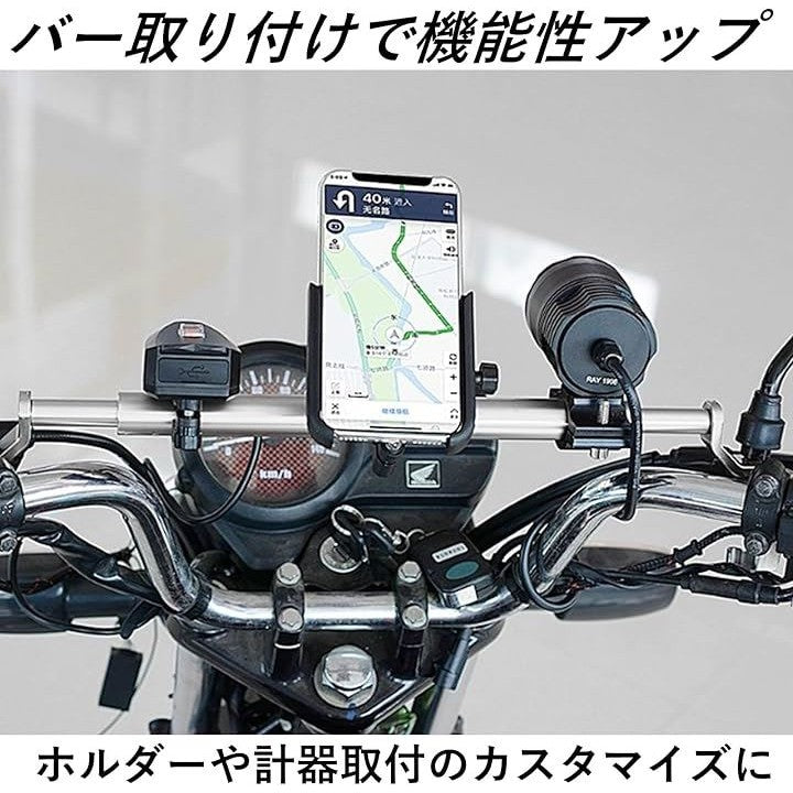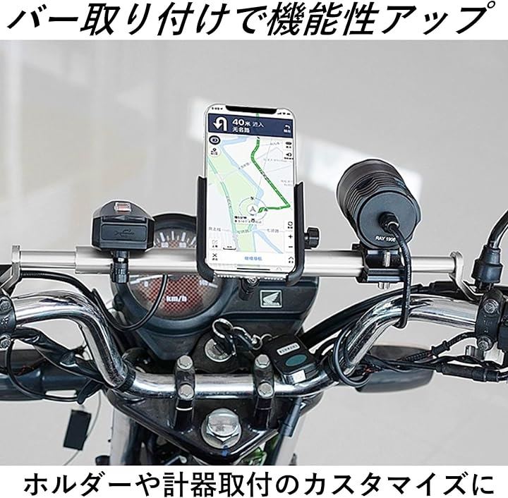 バイク 用 スマホホルダー 取付用 ハンドル バー スクーター 汎用 拡張 ミラー取付 長さ調節可 クランプ
