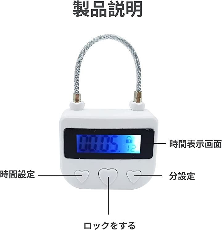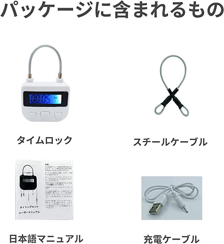 タイマー式南京錠 LCDディスプレイ USB充電式 ロック タイムロック 日本語取扱説明書付き