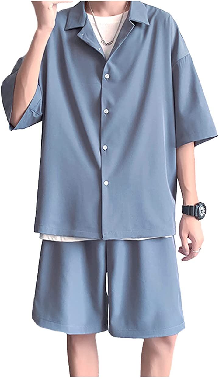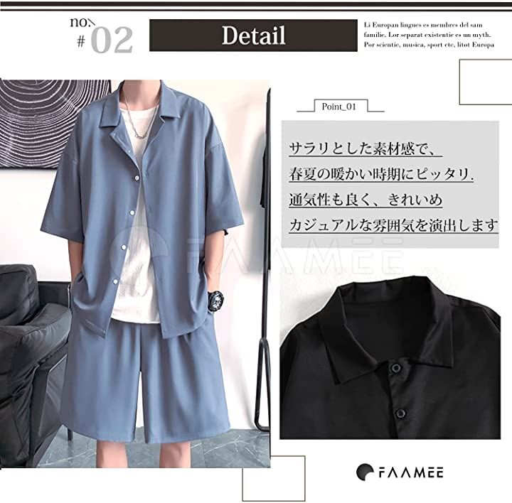 [フェイミー] セットアップ 上下セット メンズ ハーフパンツ 半ズボン 半袖シャツ M 青 ブルー |