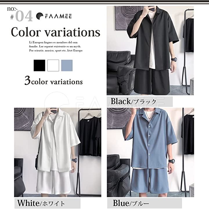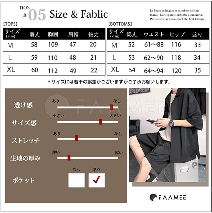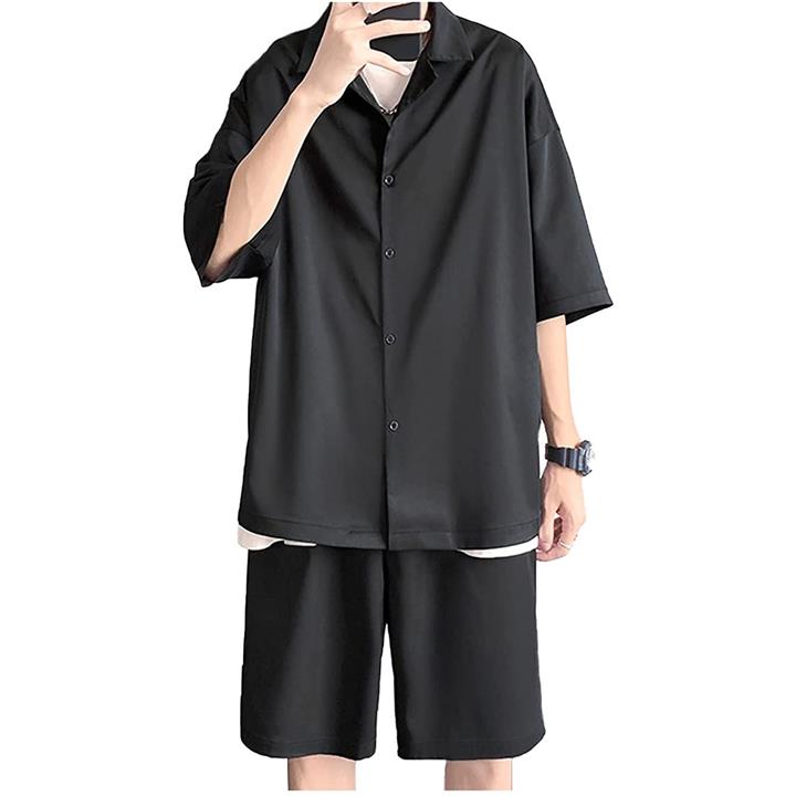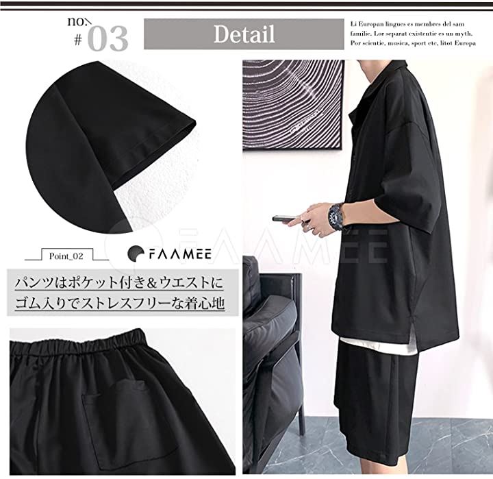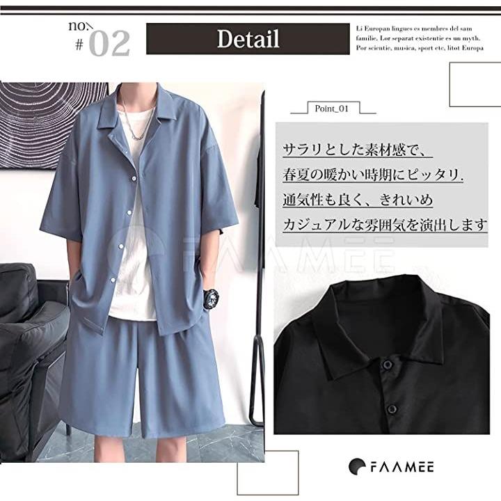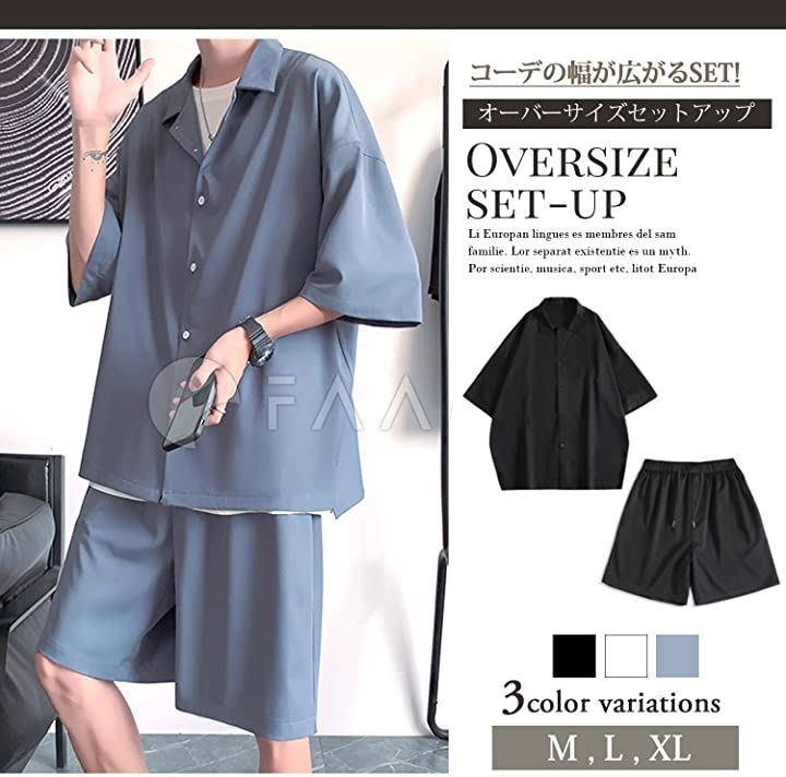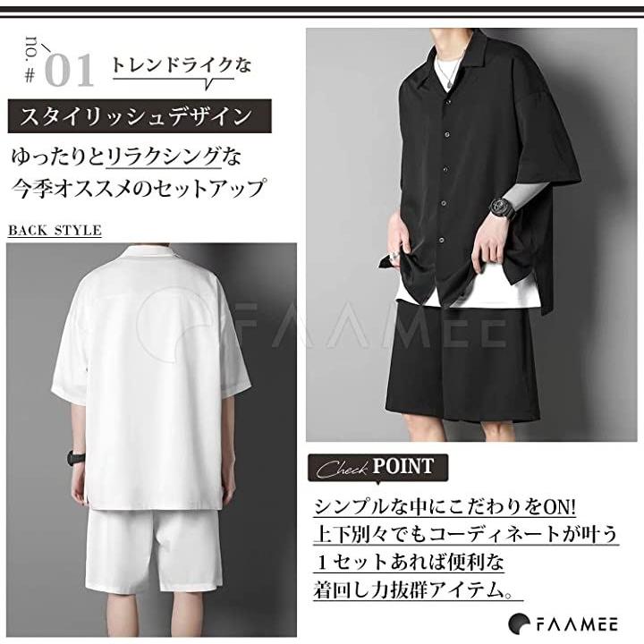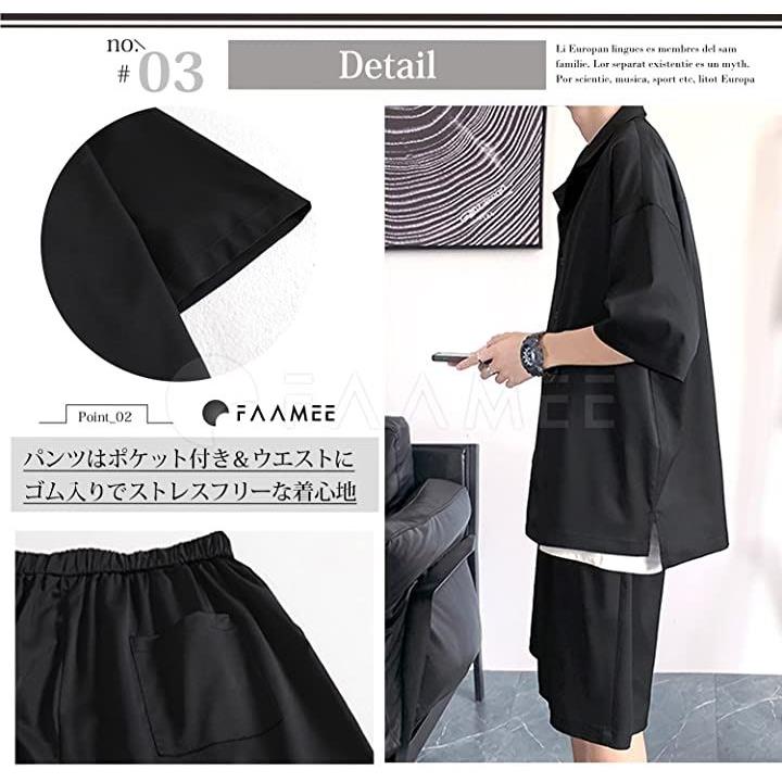 [フェイミー] セットアップ 上下セット メンズ ハーフパンツ 半ズボン 半袖シャツ XL 黒 ブラック |