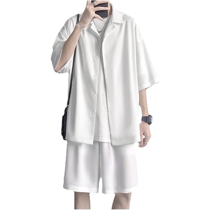 「オーバーサイズセットアップの登場」--優しい肌触り、よい通気性のあるスウェット素材で夏に人気なジャージセット&カジュアルセット*春から秋までロングシーズン使えるシンプルな半袖シャツセットアップです。今年流行のお勧めの短パン&シャツの上下セットアップです。