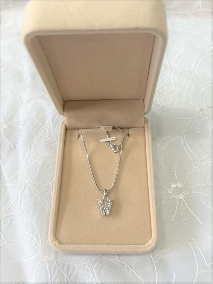 イニシャルネックレス アルファベットペンダント ラインストーン ギフトボックス付き ギフト箱入 W