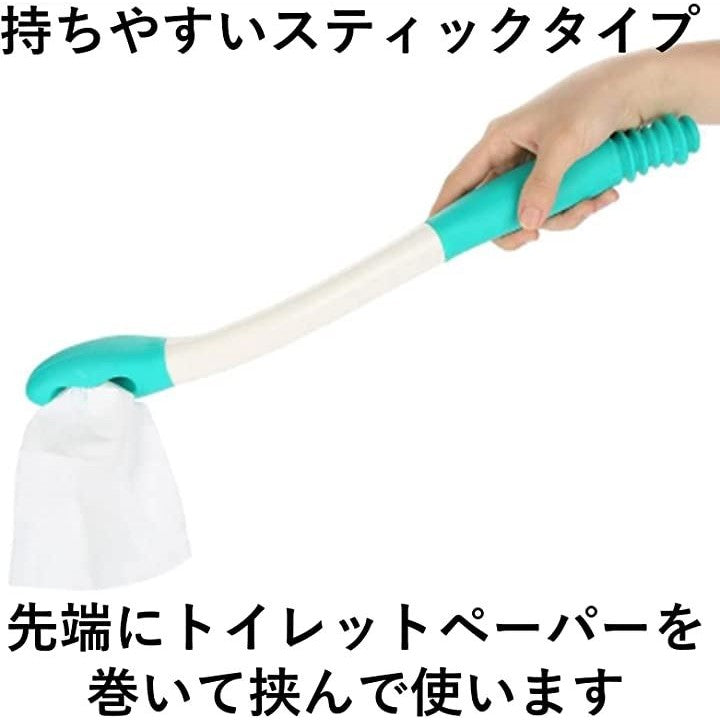 おしりふき棒 トイレ お尻拭き 補助具 38cm 排泄介助 介護 排泄ケア リハビリ 入院 グリーン&ホワイト
