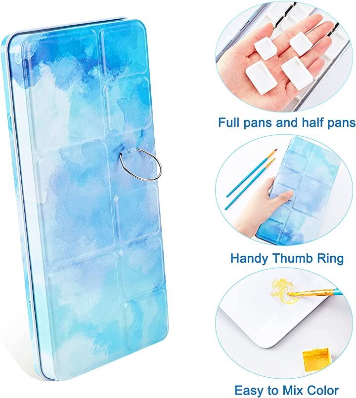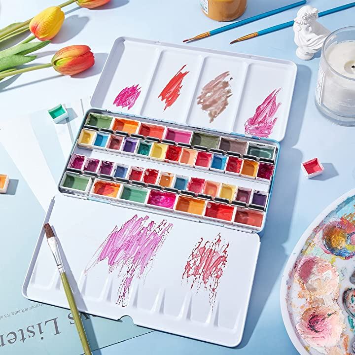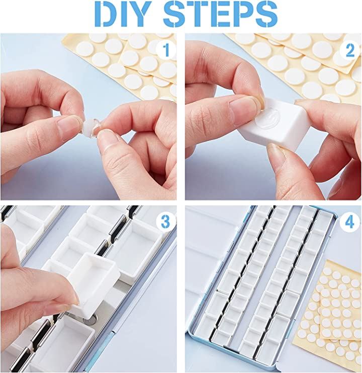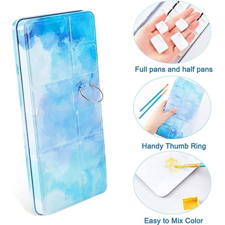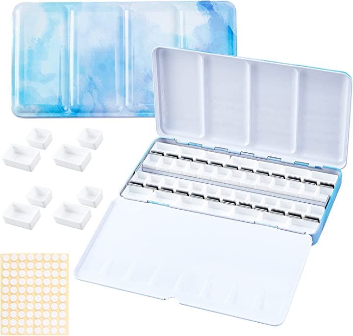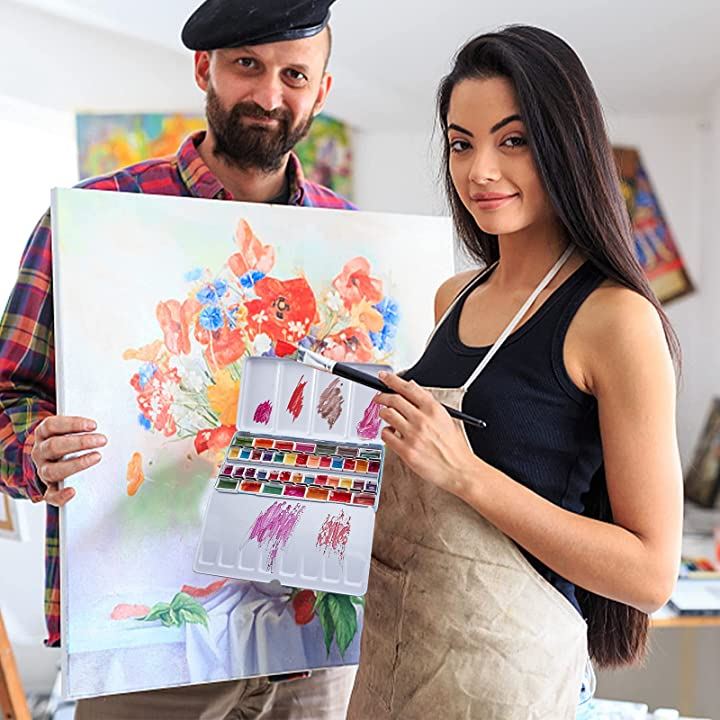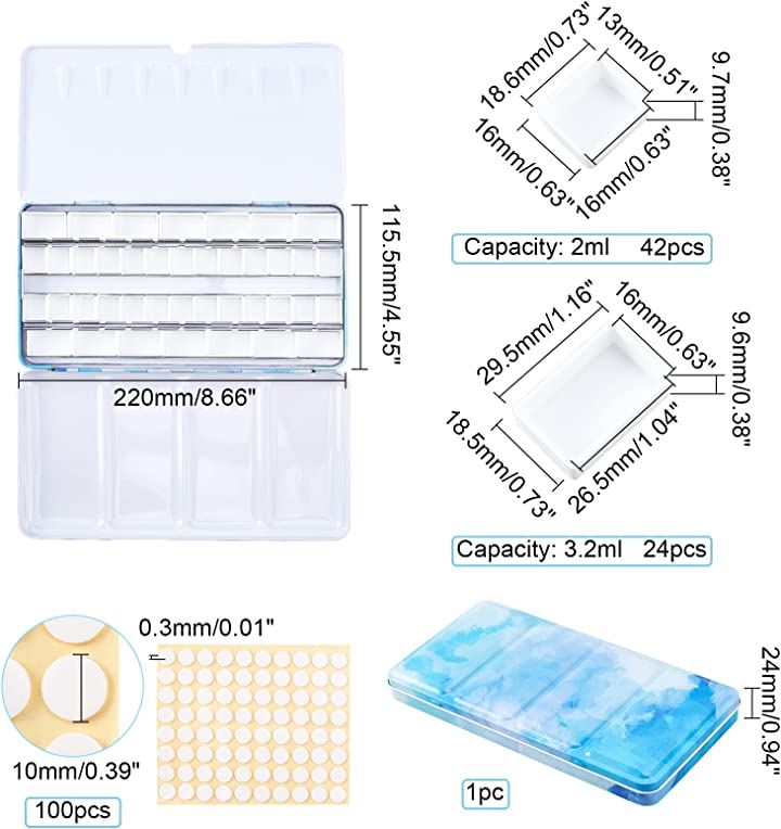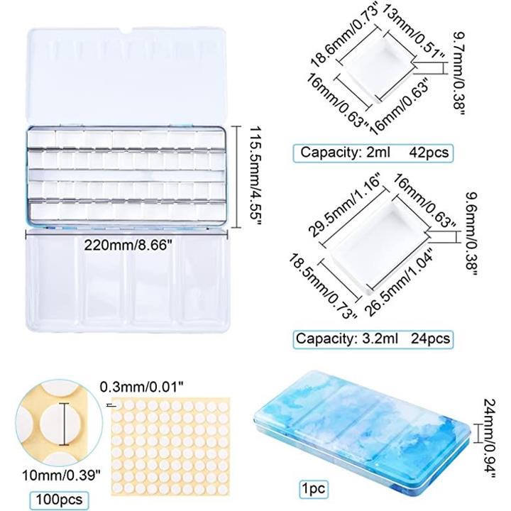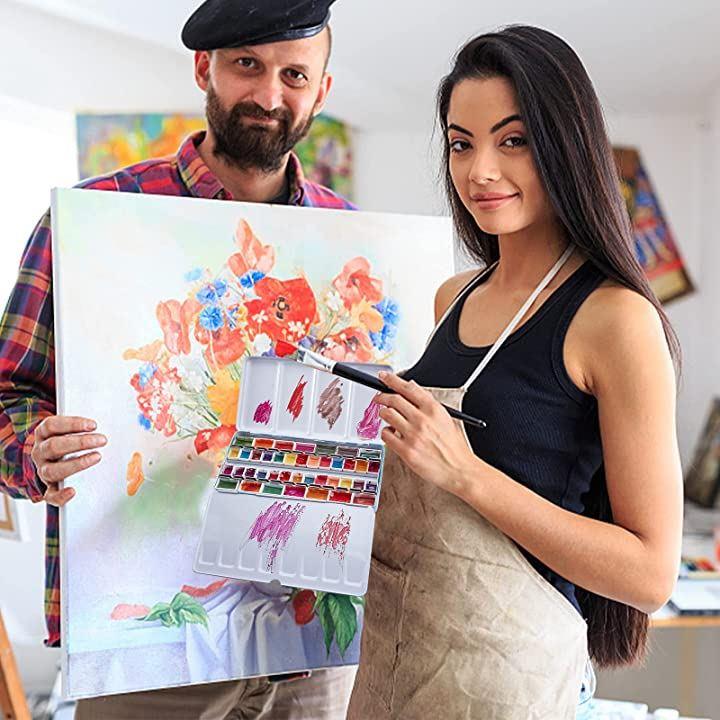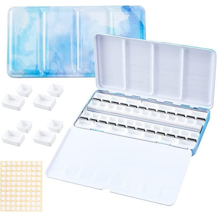パレット 水彩画用 両面 水彩ケース 絵具ケース 顔料パレット 絵画画材 絵皿 蓋付き 両面テープ100枚 油絵 漫画 ホビー アーティスト 学生 22x11.55x2.4cm 48穴