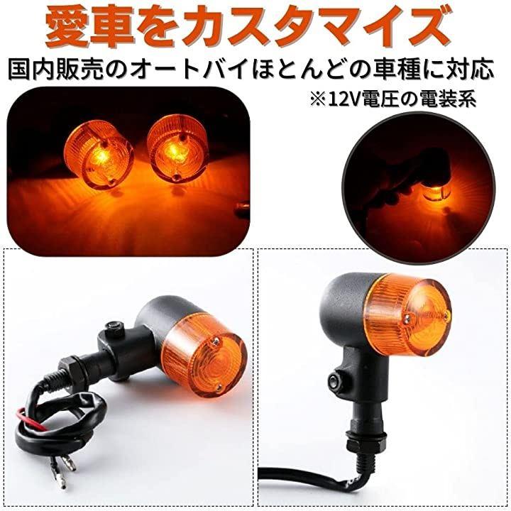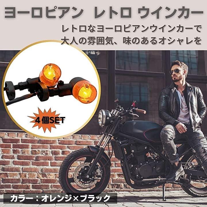 バイク ヨーロピアン ウインカー 円筒型 ライト ランプ 4個 セット 丸型 方向指示器 オレンジ