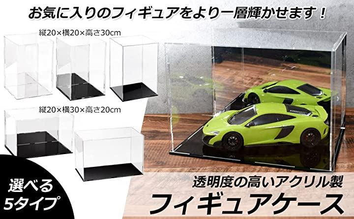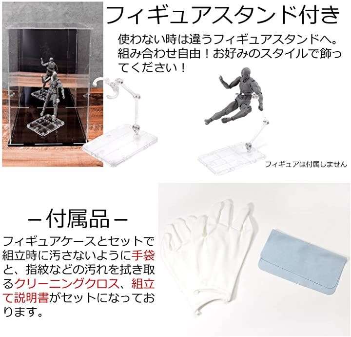 ・v「商品紹介」 本製品は、透明度の高いアクリル製の「フィギュアケース 内寸:縦20x横20x高30(cm)」と「スタンドセット: 縦9.5 x 横7.5 x 高さ 約10(cm)」になります。