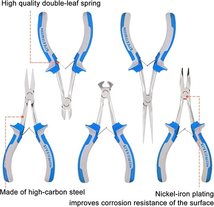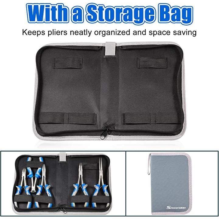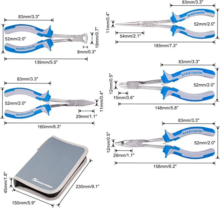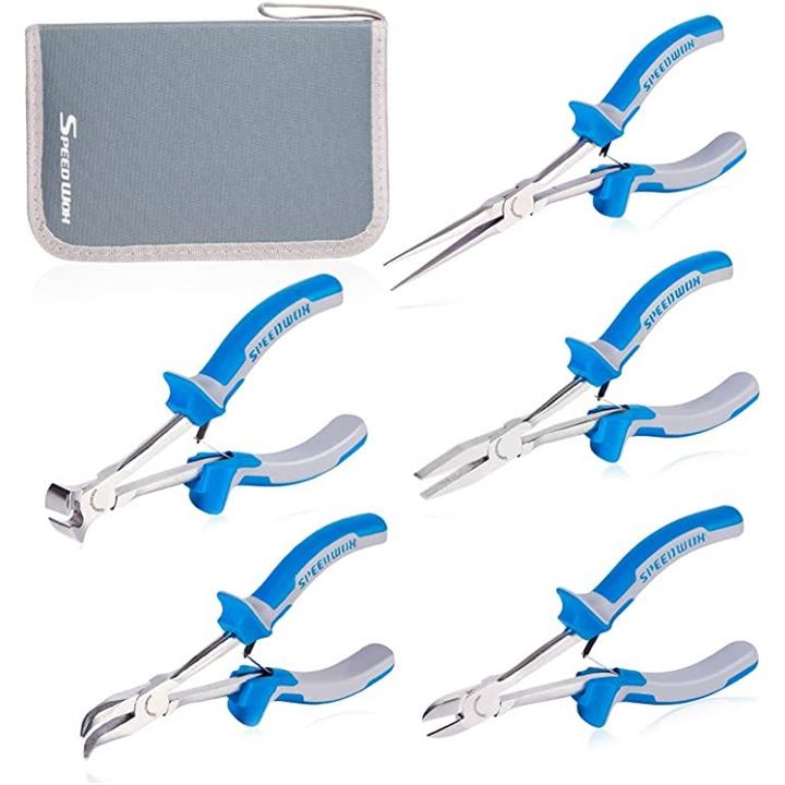 SPEEDWOX ミニペンチセット ツールバッグ付き 5本組 先細ラジオペンチ 平ヤットコ 喰切 先曲がりラジオペンチ ニッパー ロングタイプ クラフト作り 修理用