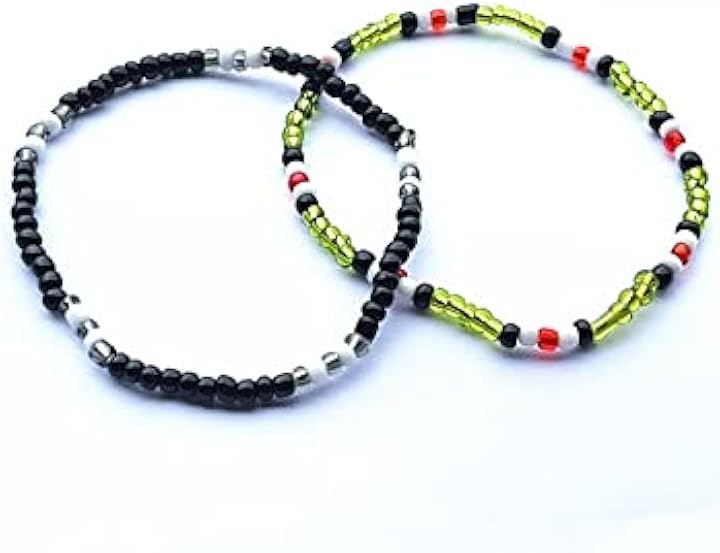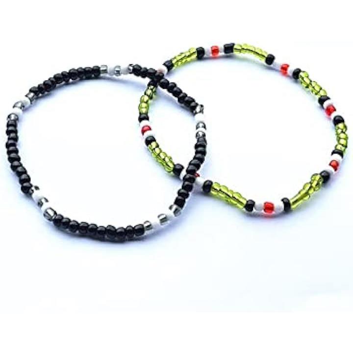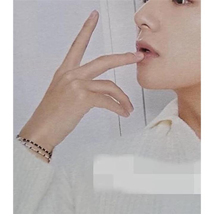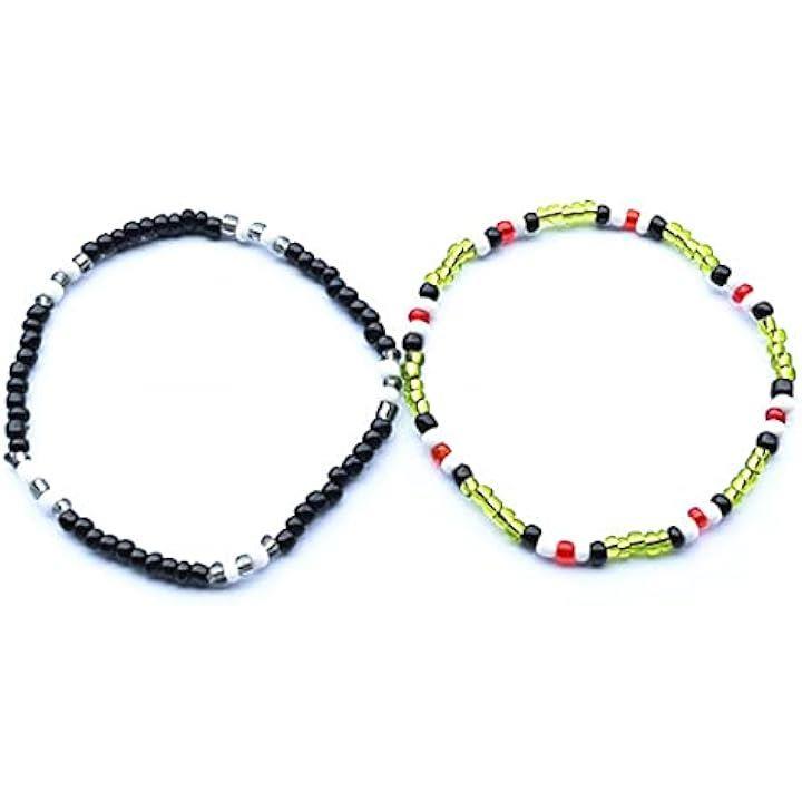 ブレスレット ビーズ 2本セット テテ着用モチーフ 韓国ファッション メンズ レディース V 黒 緑 16cm-19cm 伸縮性あり 人気デザイン