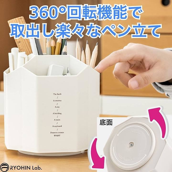 良品ラボ ペン立て 360度回転 大容量 ペンスタンド 鉛筆立て 卓上収納 収納ホルダー 文房具 1個