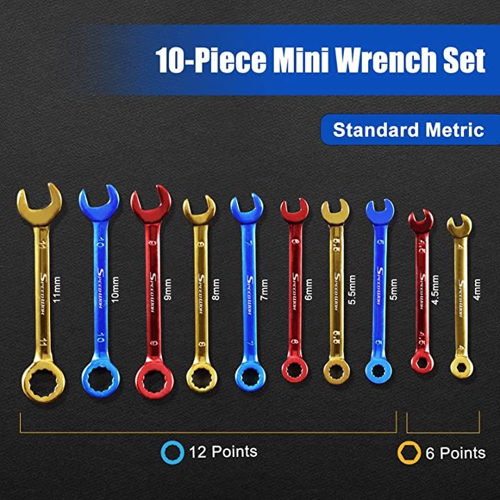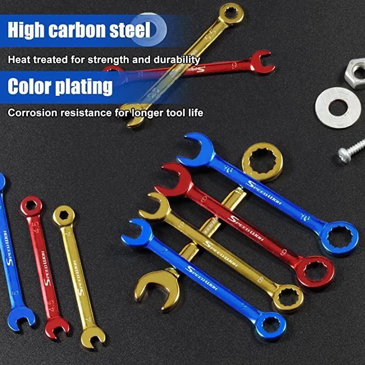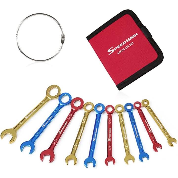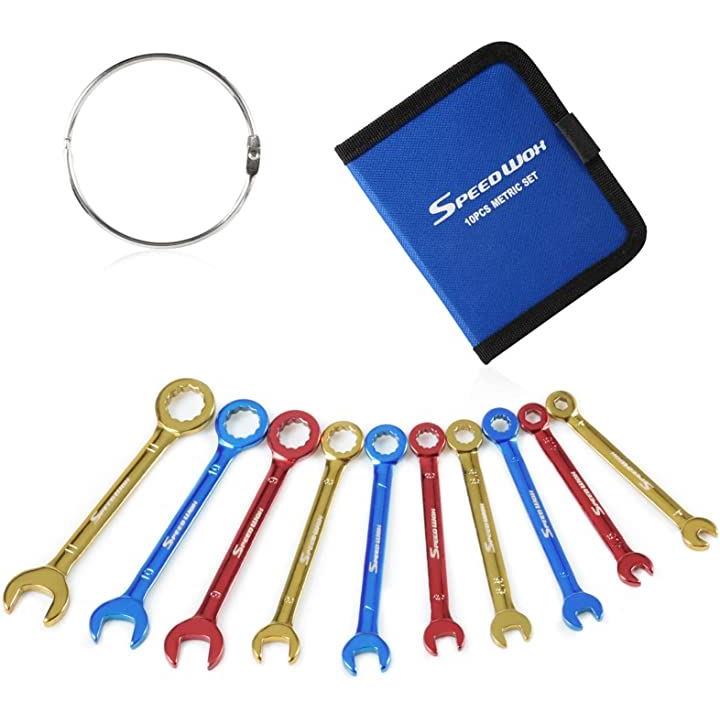 SPEEDWOX ミニスパナセット 10本組 4mm-11mm ミニレンチ カラーメッキ 片目片口タイプ ミニコンビネーションレンチセット