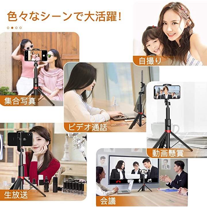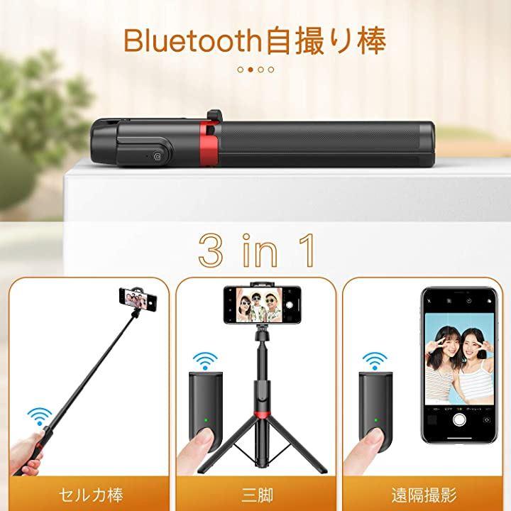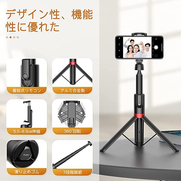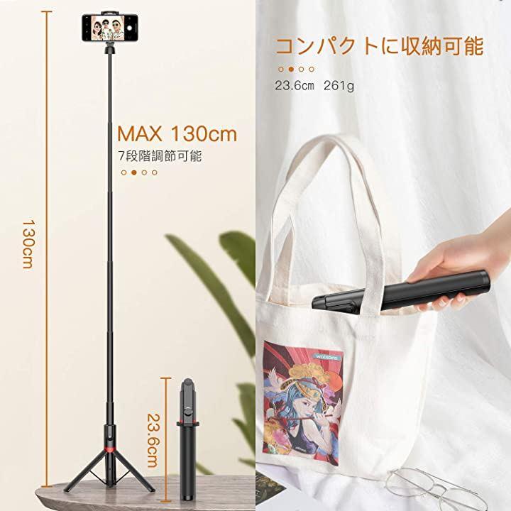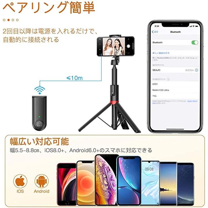 自撮り棒 Bluetooth Max1.3mまで伸びる 360度回 iOS8.0以降/Android6.0以降、幅5.5~8.8のスマホに対応 |