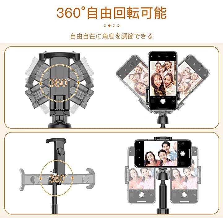 スマホホルダー部とヘッド部分が360度に回転でき、縦方向、横方向ともスムーズに角度を調節でき、いつでもお気に入りの構図で撮影出来ます。