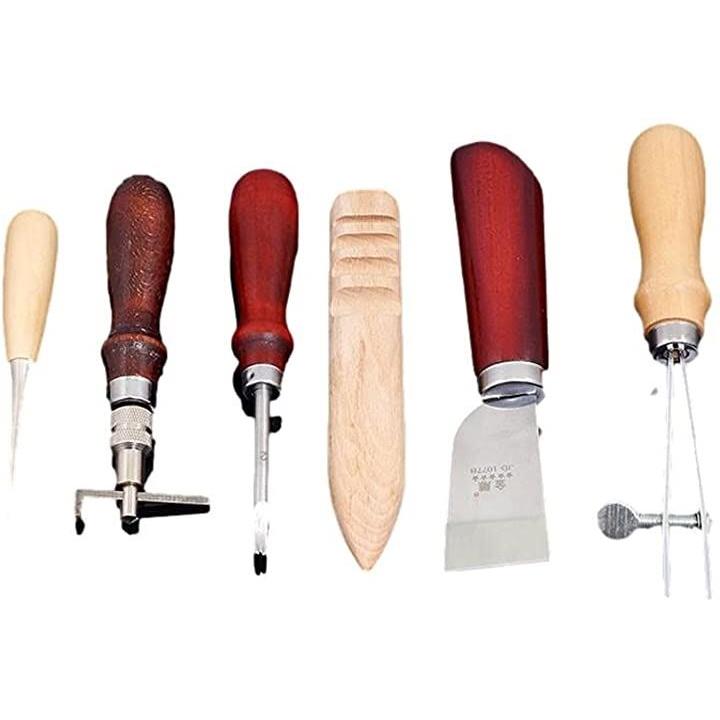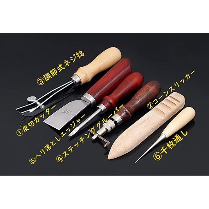 美々杏レザークラフト 工具6点セット ➀皮切カッター 2コーンスリッカー 3調節式ネジ捻 4ステッチンググルーバー 5ヘリ落としエッジャー 6千枚通し