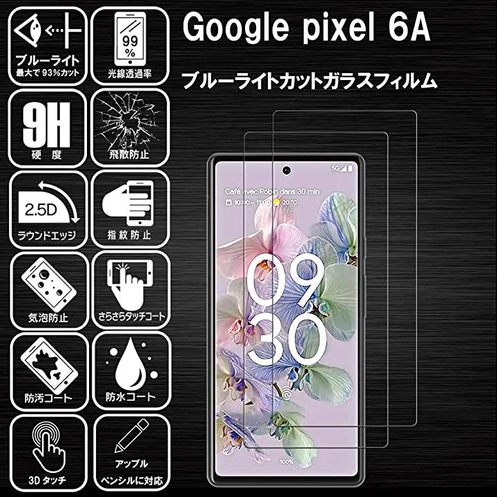 2枚セット RISE フィルム ガラスフィルム ブルーライトカット Google Pixel 6A用 保護フィルム 強化ガラス 日本製 硬度9H 2.5Dラウンドエッジ 自動吸着 気泡ゼロ