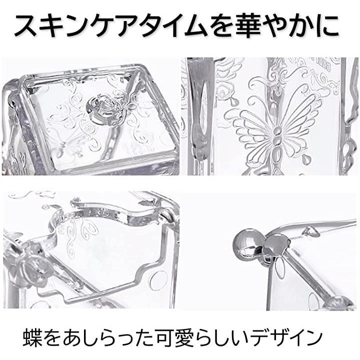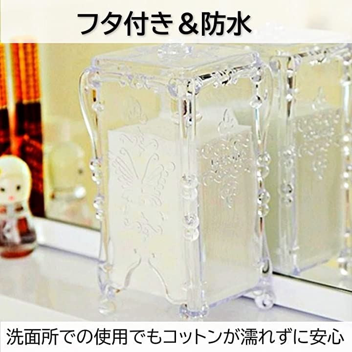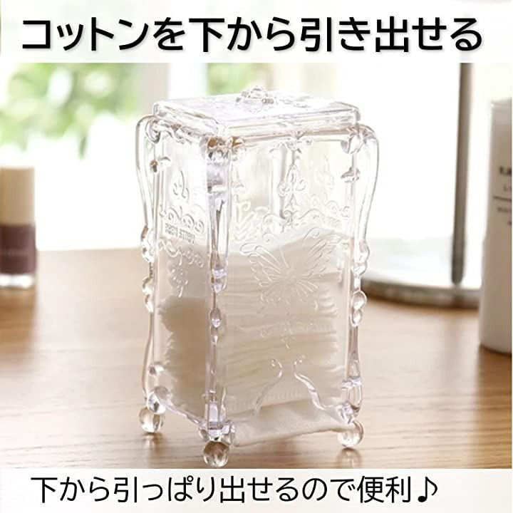 コットンケース コットン入れ アクリル ボックス 下から取り出せる 花 蝶 蓋付き