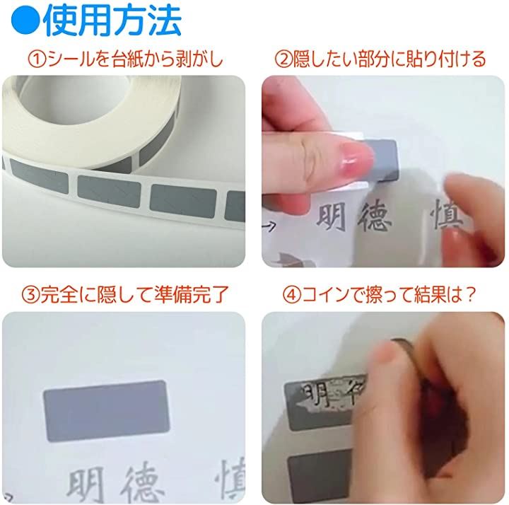 スクラッチシール 削る 削れるシール1000枚 セット 長方形 四角 隠す ラベル ステッカー イベント 6x22mm