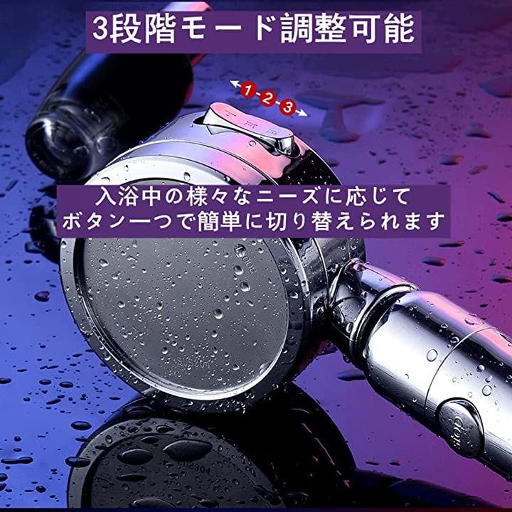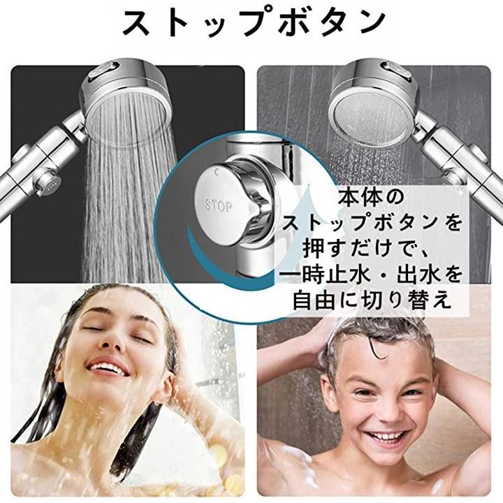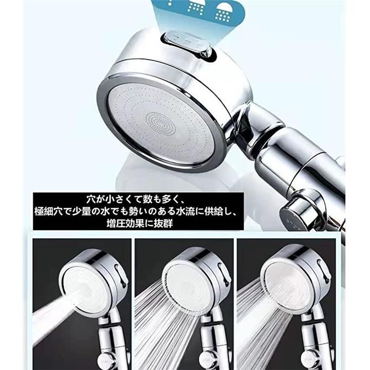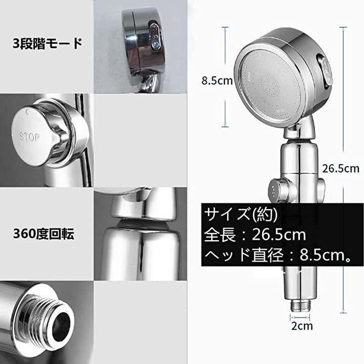 互換品シャワーヘッド スパレベル 3段階モード 増圧 手元止水 360度回転 シルバー