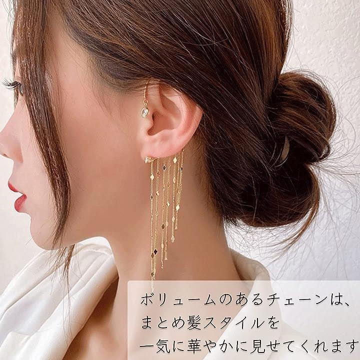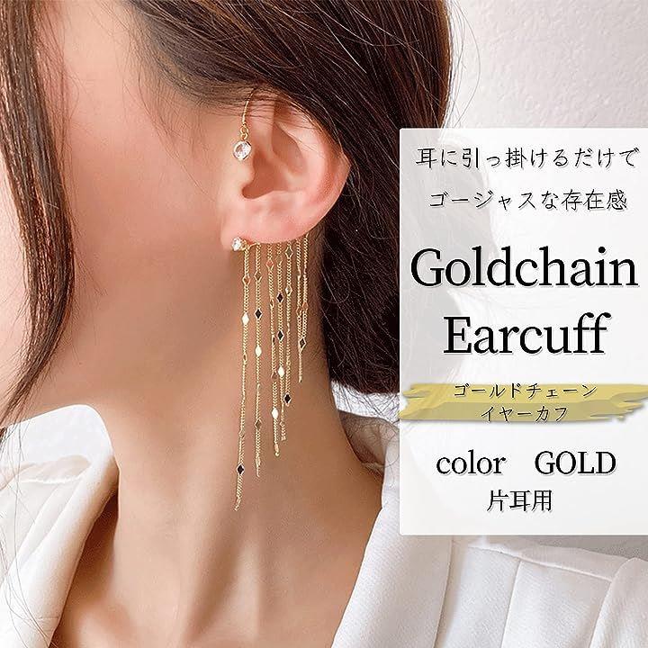 揺れる ゴールド チェーン 片耳用 レディース ノンホールピアス