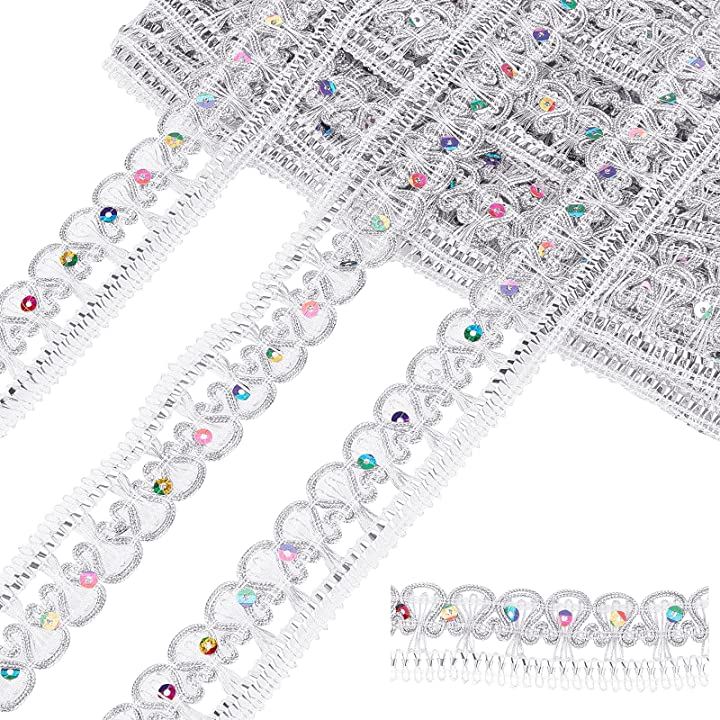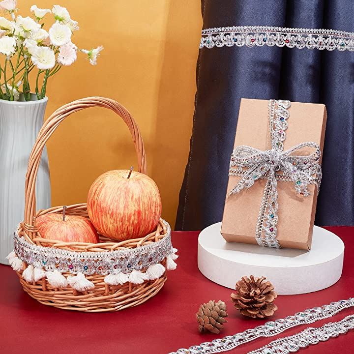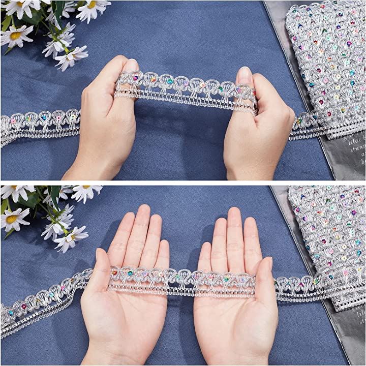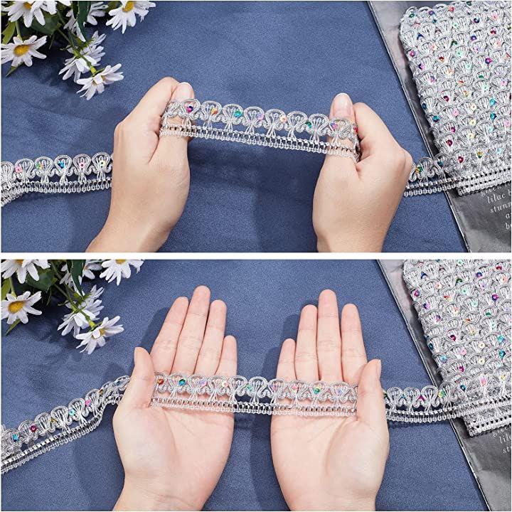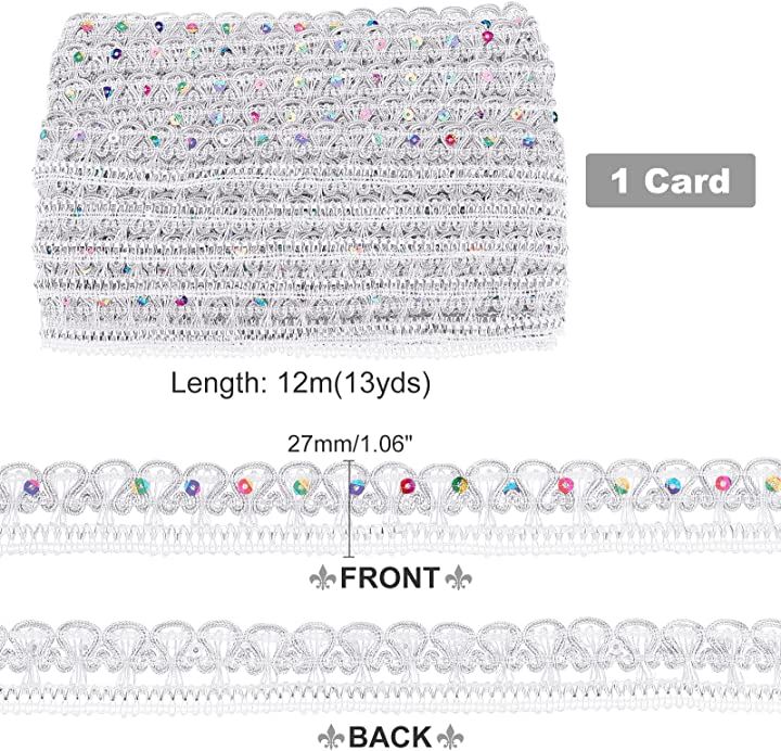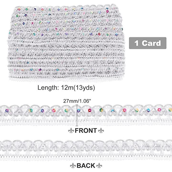 PH Pandahall 手芸ブレード キラキラリボン アクセサリーパーツ シルバー 縫製装飾 幅約27mm、長さ約12m