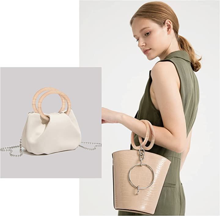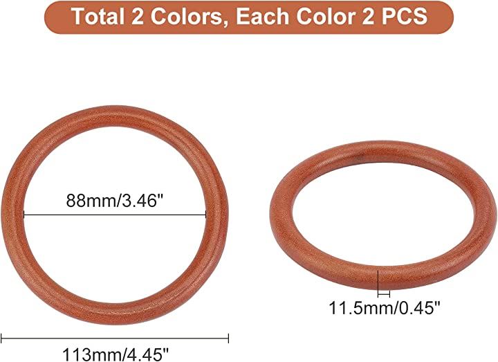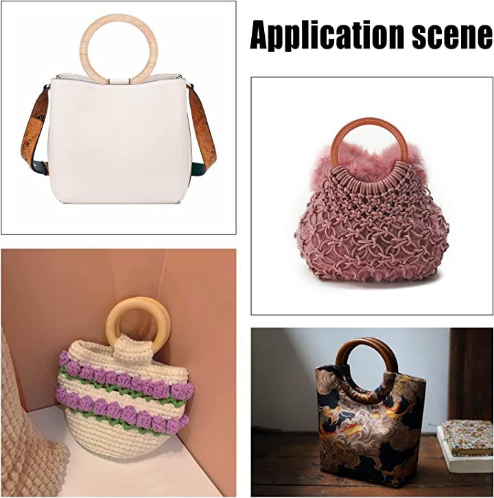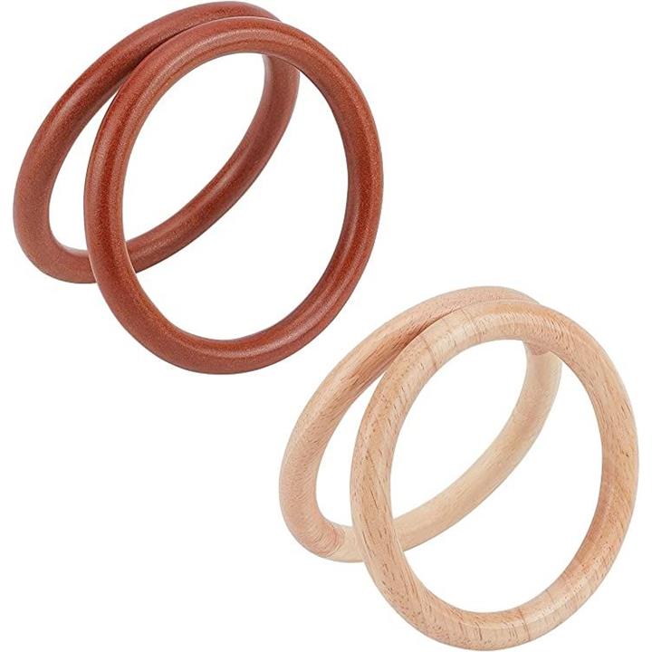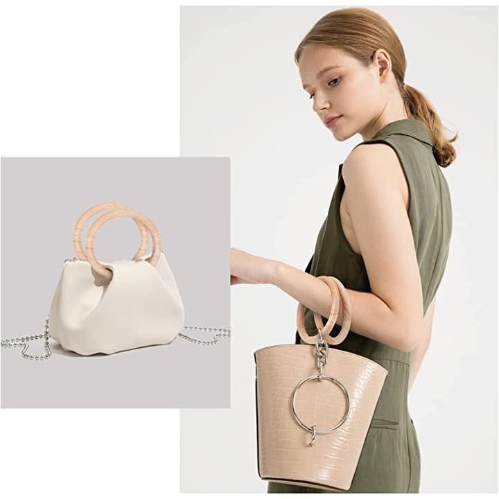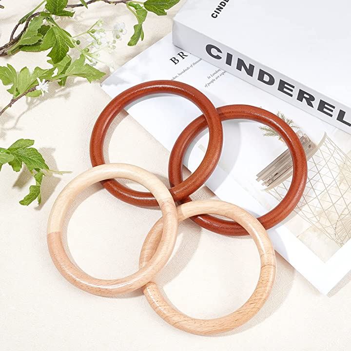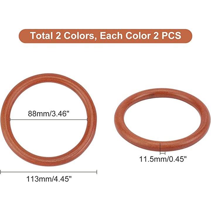 4個 2色 木製 リングハンドル 持ち手 丸型 木工持ち手 取っ手 バッグ修理用