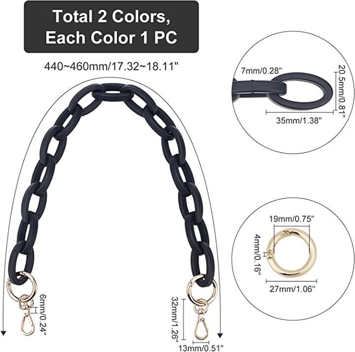 2色 バッグ持ち手 アクリルチェーンバッグストラップ チェーンストラップ 長さ44cm 肩掛けチェーンアクセサリー