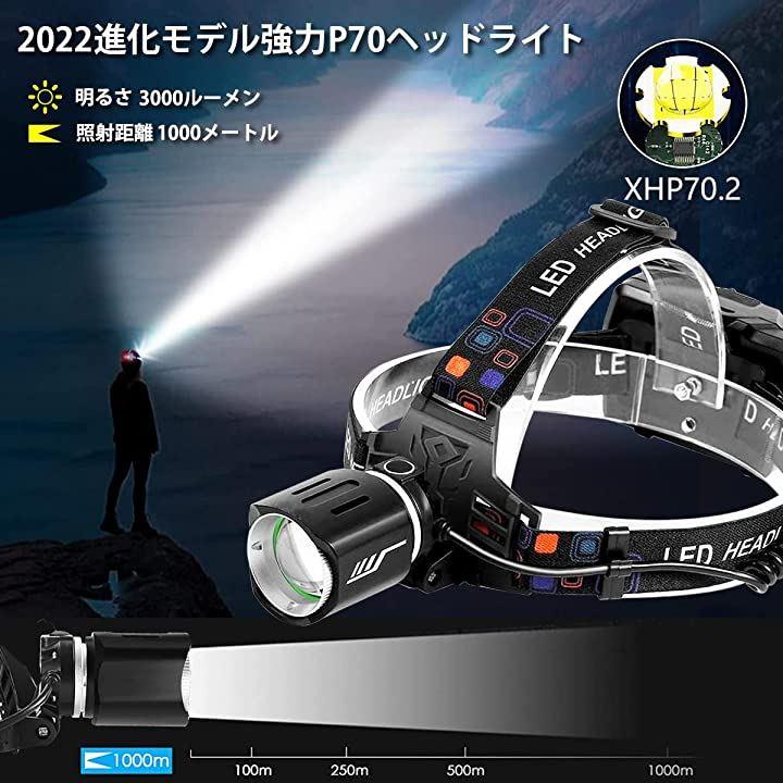 ・*「進化超強力LEDヘッドライト」 2022進化仕様米国製超高輝度XHP70光源チップを搭載する強力ledヘッドライトとして、常XHP50ヘッドライトの約4倍の明るさを実現し、遥かに超える光量を持っています。