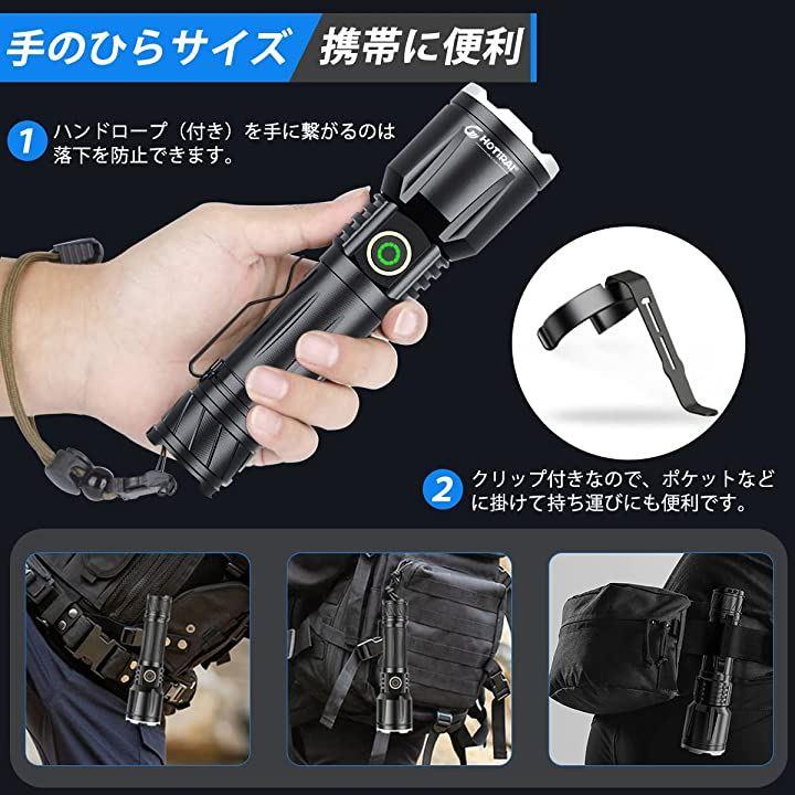 ・「進化版LED光源&驚くほど明るい」HOTIRAI最新版の超強力LED懐中電灯は、新世代の米国製XHP160 LEDコアを採用し、16箇の超高LEDチップを搭載し、照射範囲が広く伸縮可能な強力な懐中電灯となります。