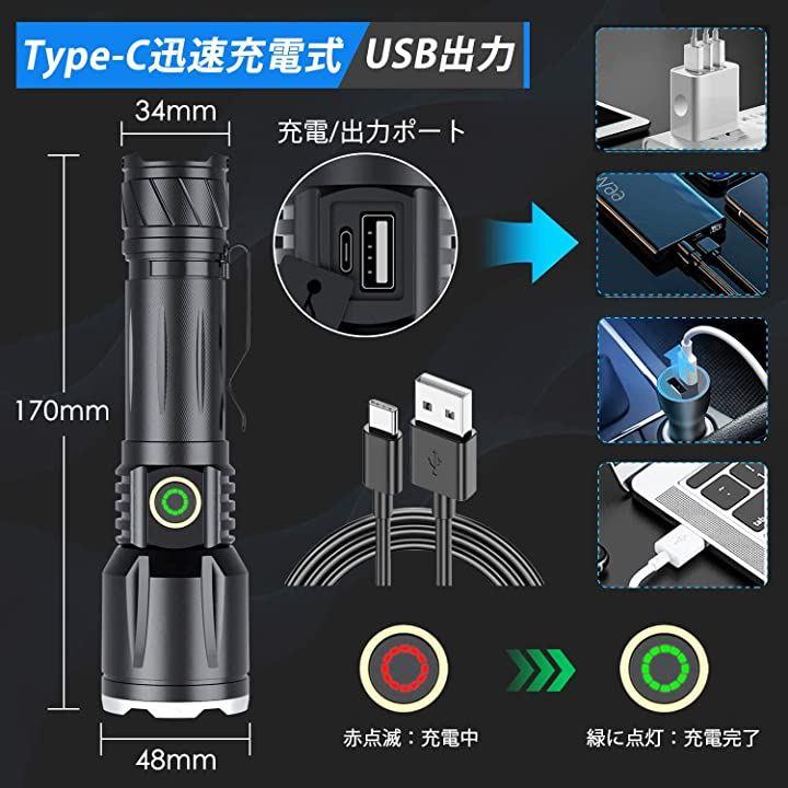 互換品 懐中電灯充電式強力 LED懐中電灯 LEDハンディライト |